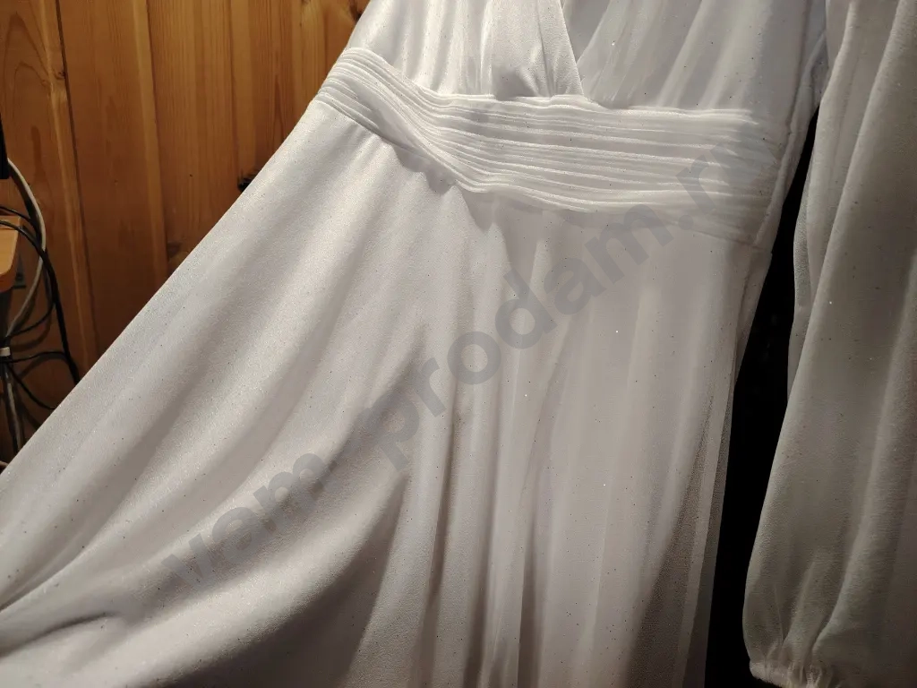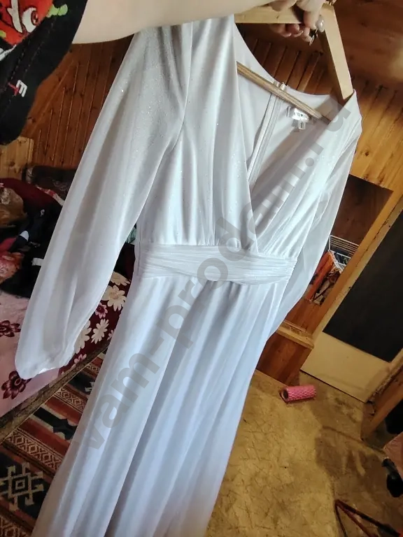 Платье в отличном состояние. По итогу выбрала другой фасон. Красиво переливается. Полупрозрачное - под телёнок белье. Эффектное.