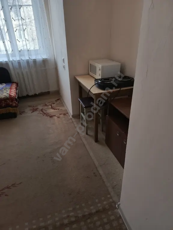 Комната площадью 10м² на 2м этаже . Много соседей - собственники комнат . Соседи спокойные . В комнате пластиковое окно большое , от этого комната очень светлая . Комната только после косметического ремонта : стены выкрашены в светлый беж , уложено ковровое покрытие , заведено под плинтуса ( разуваться нужно на входе ) . К люстре идут 2 выключателя ( можно вкл/выкл как от входа , так и не вставая с кровати ). Установлены 4 двойных розетки - всё работает . В комнате тепло и уютно за счёт солнечной стороны , батареи под окном и нежной тюли .