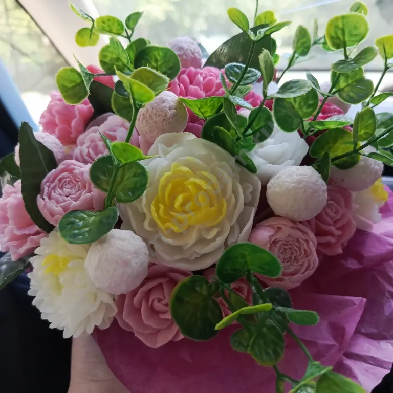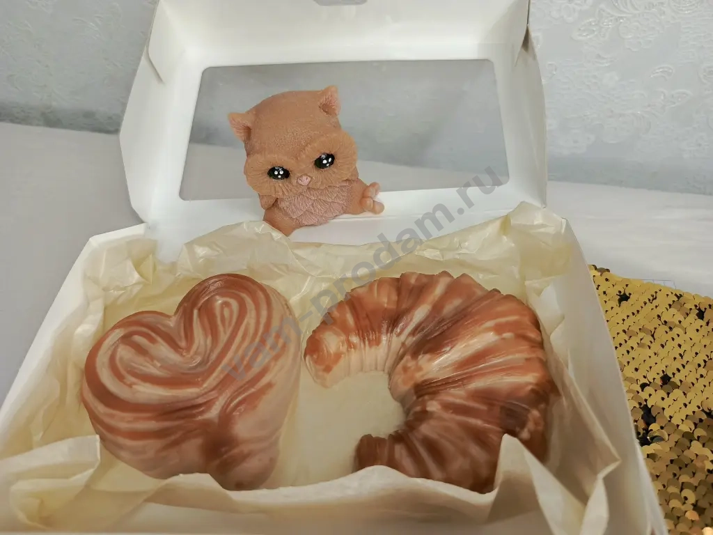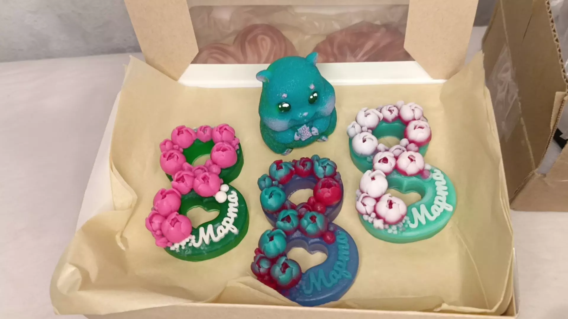 На моей странице вы найдёте подарок на любое торжество : день рождения , свадьба , выпускной , 8 марта , 23 февраля , новый год , даже удастся подшутить 1го апреля. Хотите удивить бабушку / маму - подарите баночку мёда или тарталетку ягод ; желаете увидеть улыбку на лице папы / брата - хинкали и бутерброды с красной / чёрной икрой будут как раз кстати ; подшутить над друзьями можно с мыльной выпечкой или мини оливье ; подруга обрадуется не калорийным эклерам , милым зверюшкам или пухлым губам из мыла - желе . Так же не беда , если ваш малыш - непоседа не хочет мыть ручки - интересным мылом это будет в радость . Таба -лапка , 2 вида кусочков пирога , массажное мыло с морем внутри - радость для глаз и для вас . Мыльные букеты будут как раз кстати на торжество , а нежное сочетание цветов и зверей будет радовать одаряемого долго сначала своим видом и ароматом , а потом и прямым предназначением . Всё , что на фото сделано из мыла . Огромный плюс моего мыла - не вызывает раздражения и аллергии , не красит сантехнику , но вызывает привыкание 😁