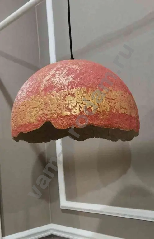 Абажур папье-маше в русском стиле, пока в наличии! Размер: диаметр 37 см., высота 27 см., идёт с метровым проводом, цоколем е 27 и потолочной чашей!