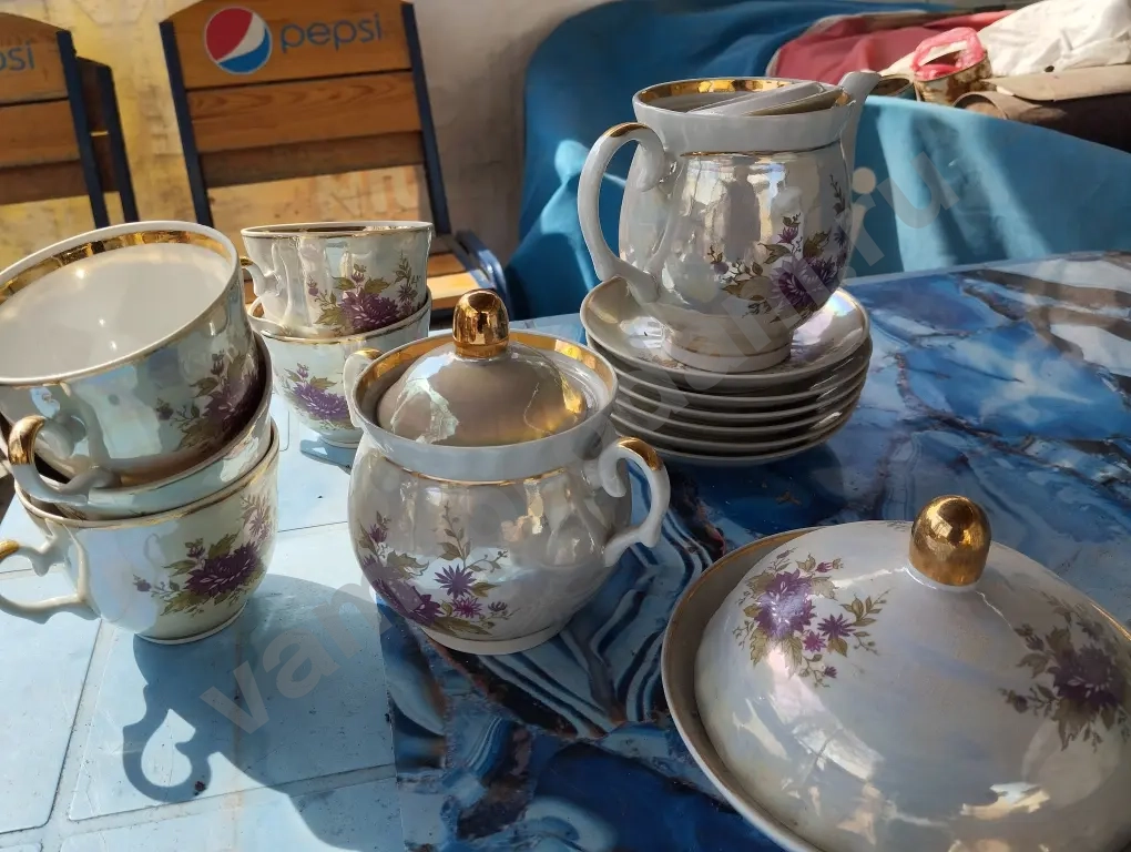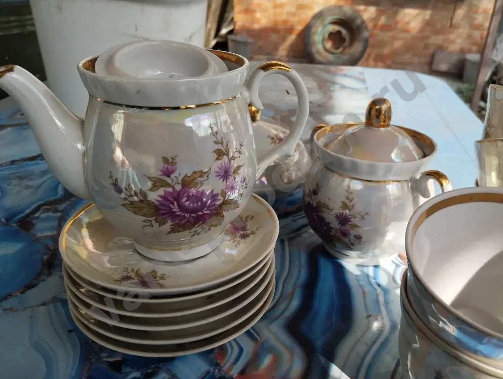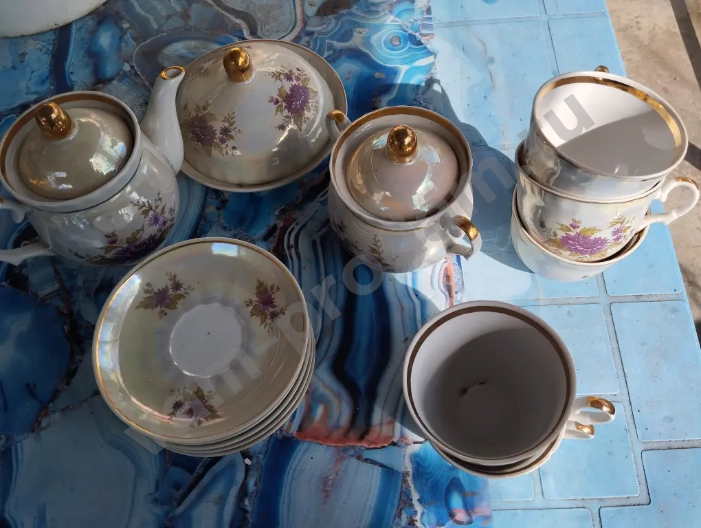 чайный сервиз столовый СССР 6 блюдец 5 чашек масленица заварник сахарница в хорошем состоянии