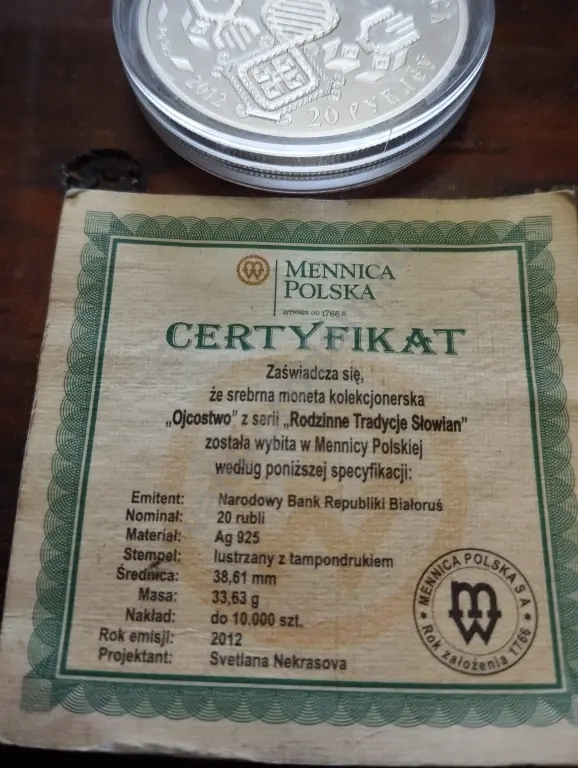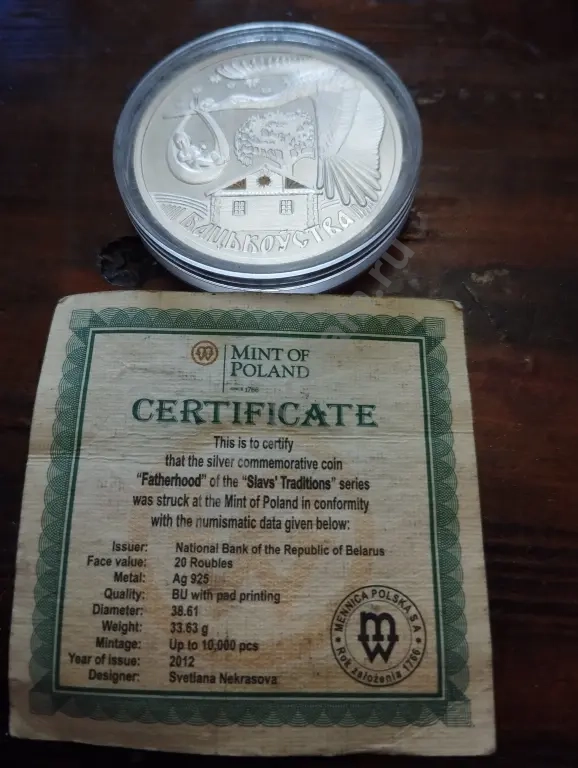 20 рублей Белоруссии серебро вес 33.63 грамм проба 925