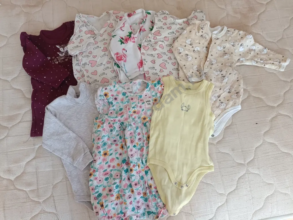 Два пакета вещей для девочки размером 56-80. В комплект входят боди, слипы, чепчики, ползунки, кофточки и костюмы в отличном состоянии, без пятен и дырок. Некоторые вещи абсолютно новые, не успели поносить, так же 20% вещей ручной работы, сшиты с любовью. Все вещи аккуратно собраны и готовы к использованию.
