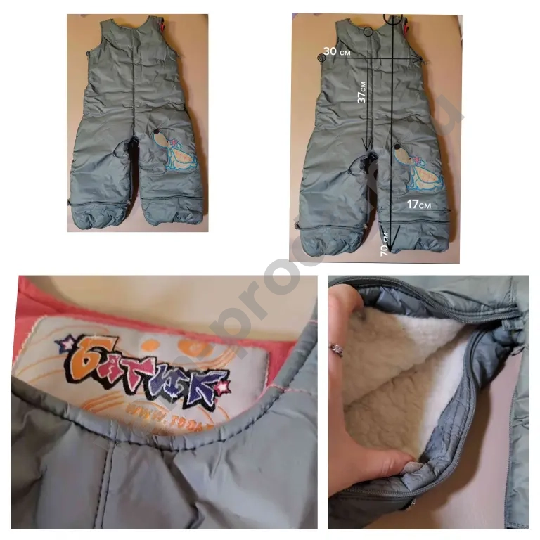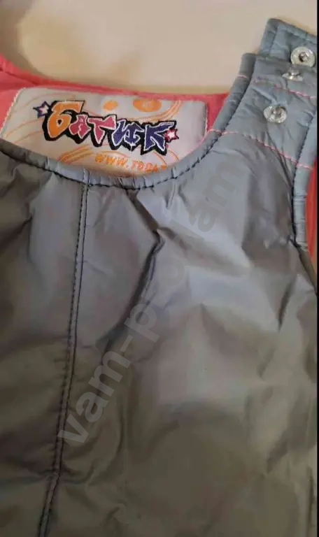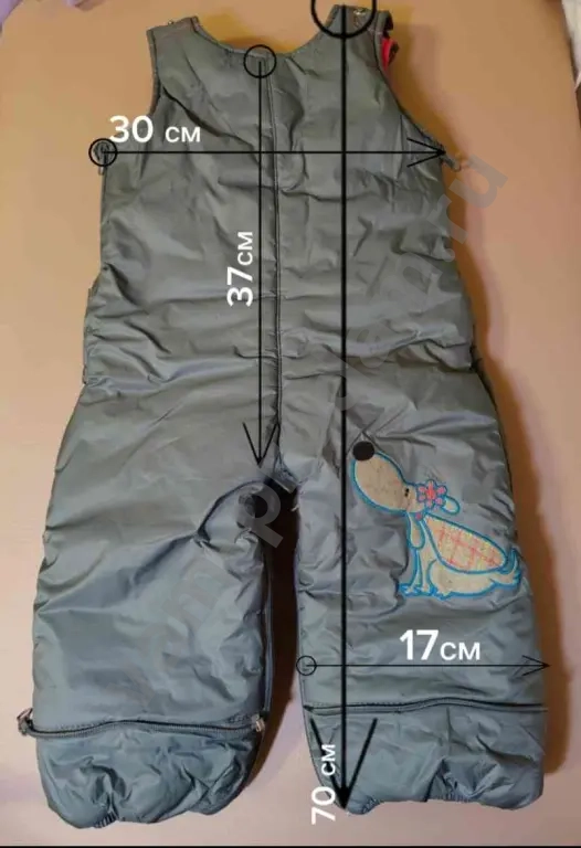 Внутренняя часть грудного отдела полукомбинезона состоит из тканевой мягкой ткани из розового цвета до подмышечной области, далее вниз идёт утепление.