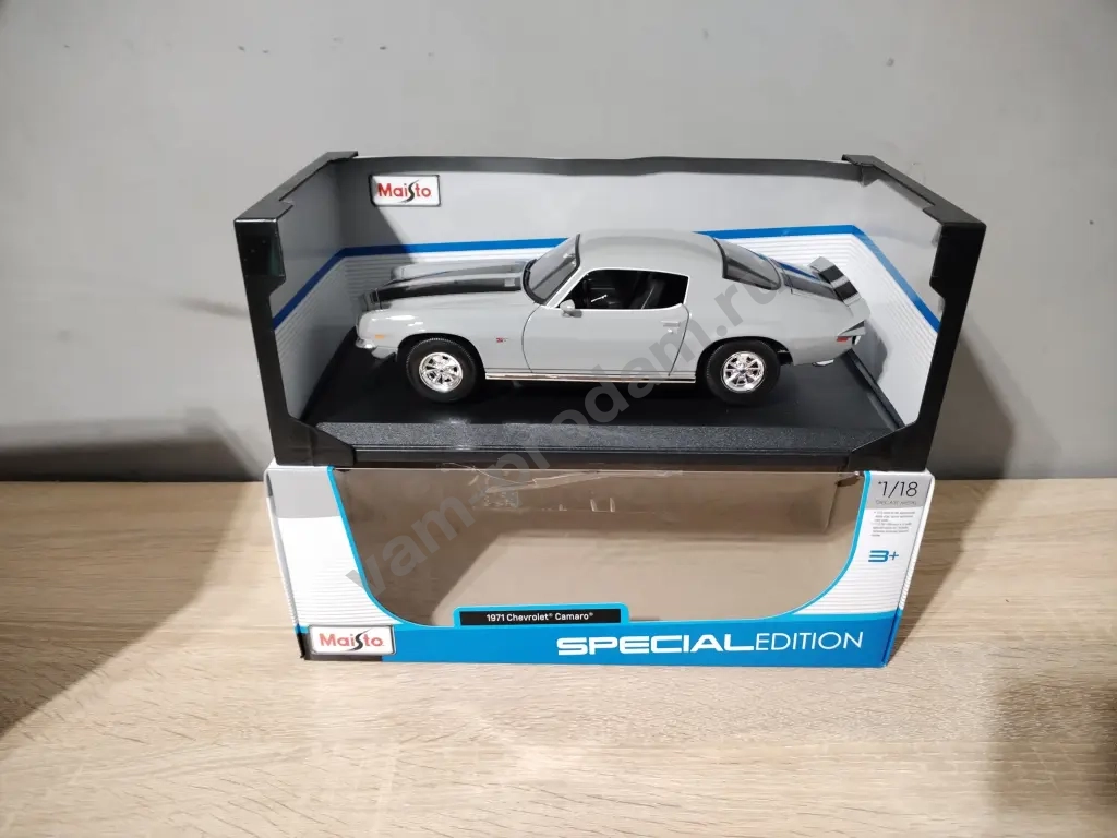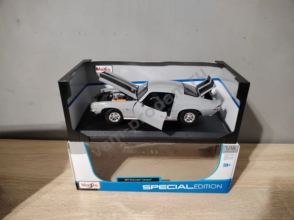 Коллекционная металлическая машинка Chevrolet Camaro 1971. Масштаб 1:18. Практически новая. Находится постоянно в коробке. Коробка имеет повреждение. Сама машинка в идеальном состоянии.