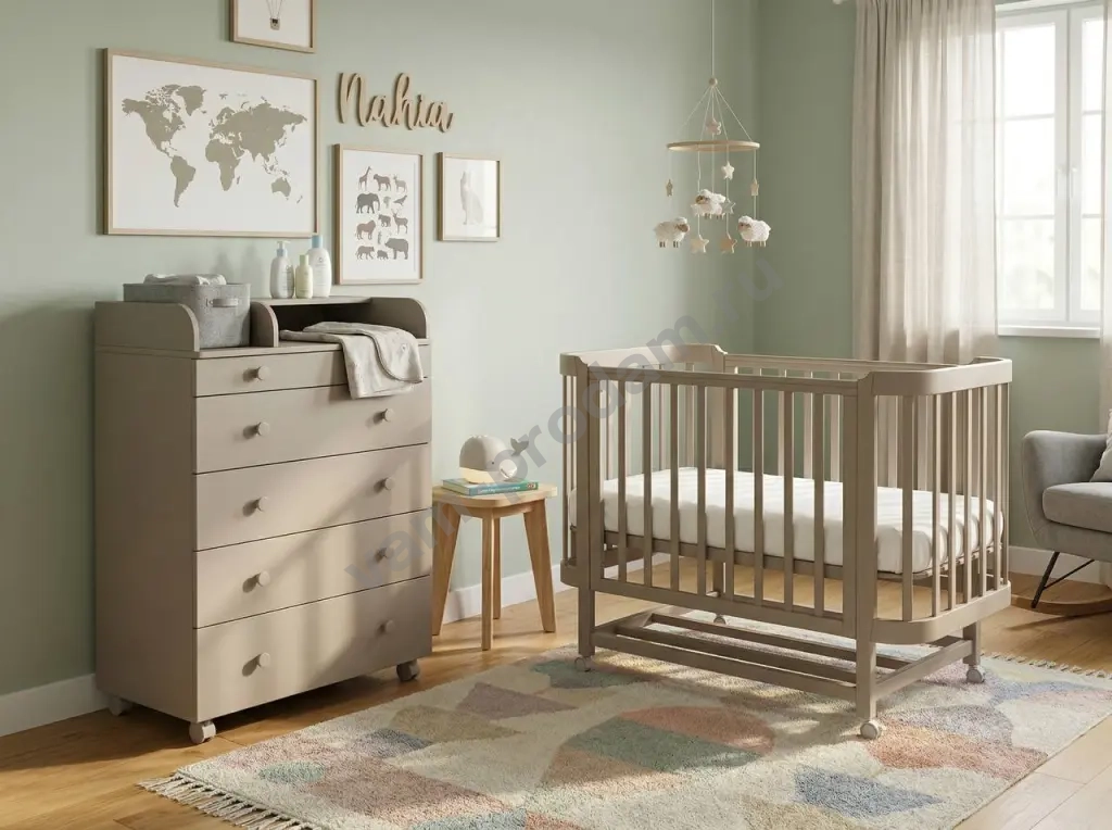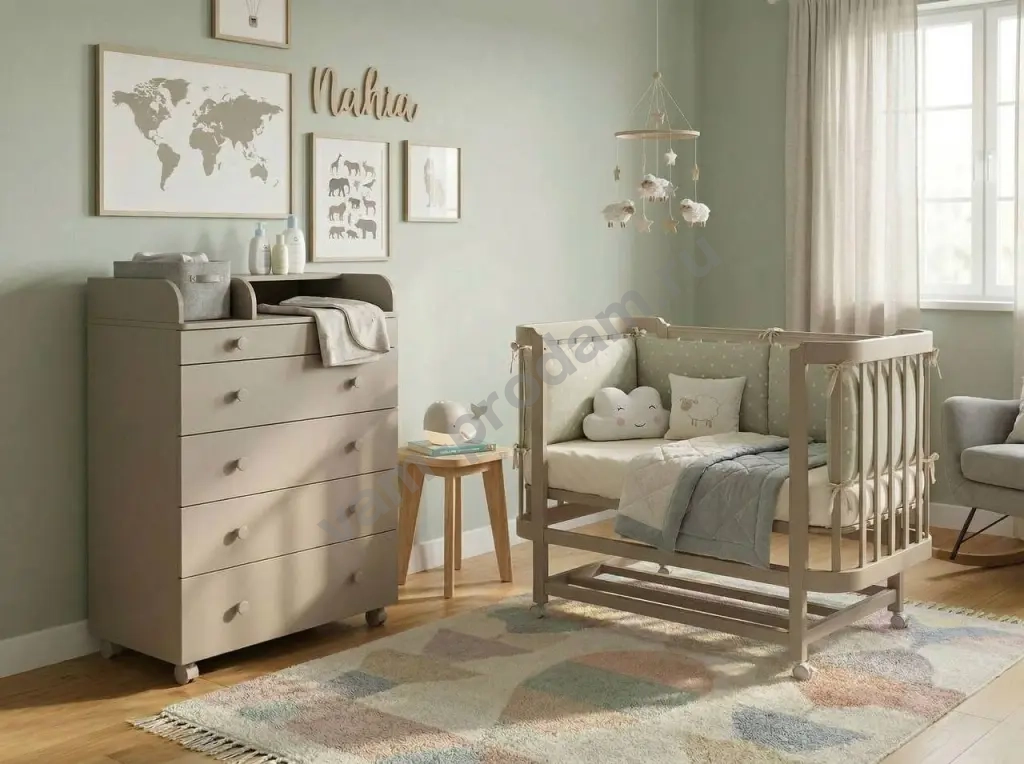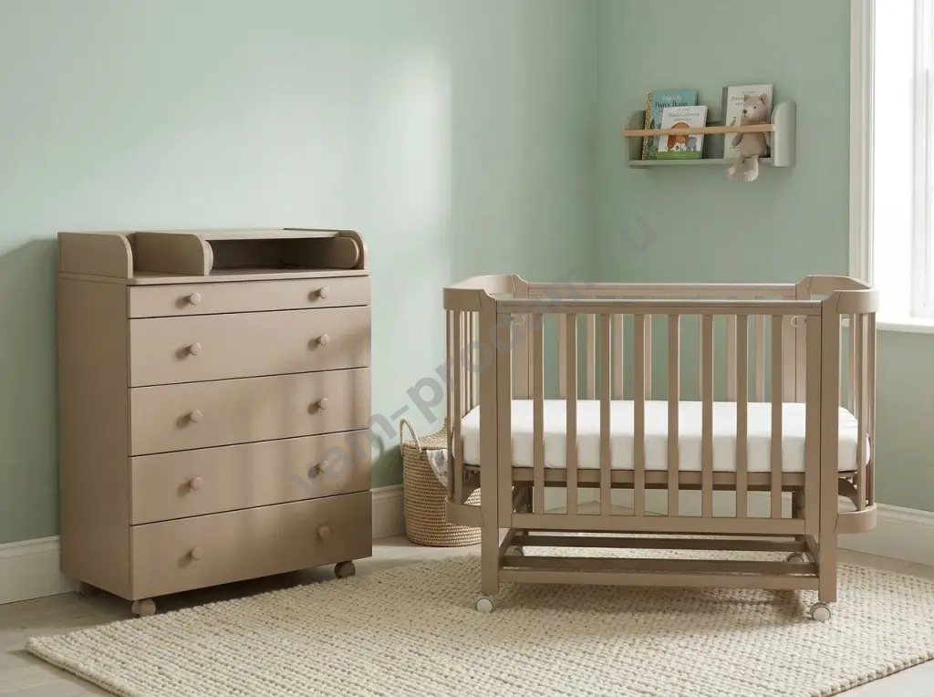 Комод оснащен пеленальным столиком.