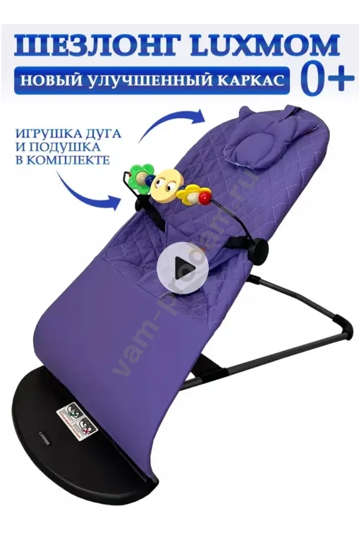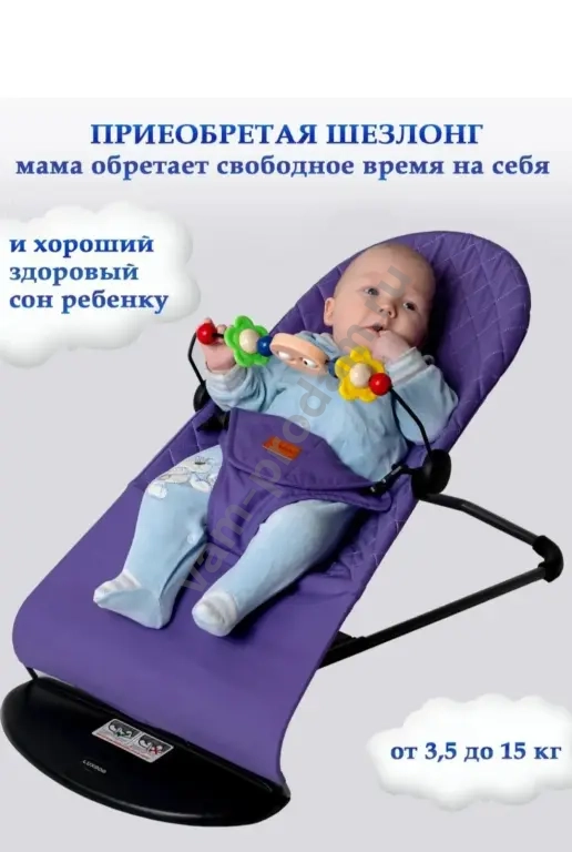 Детский шезлонг для малыша. Есть 3 положения и игрушка. Очень удобная вещь, пока малыш не может сам сидеть. Покупали новый. Чехол снимается и стирается, немного потерялся цвет, но состояние хорошее, всё работает. Возможен торг на месте.