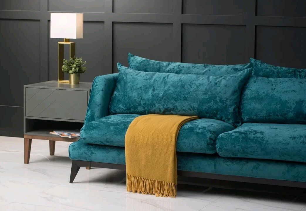 Диван можно выполнить на заказ в желаемой ткани и цвете ножек.