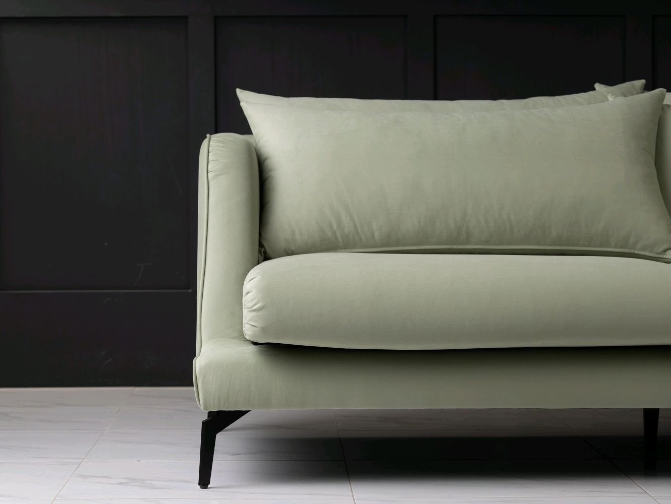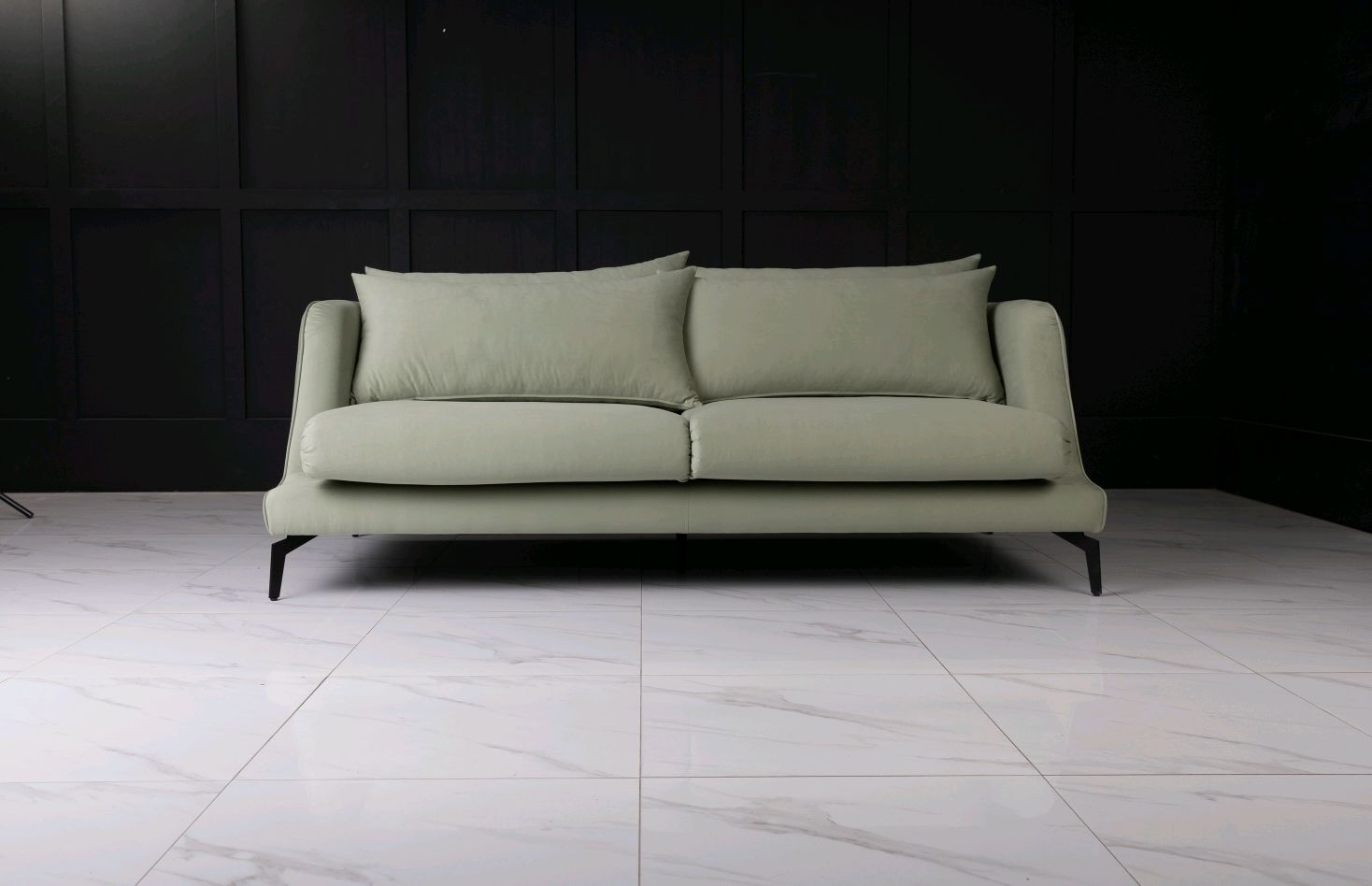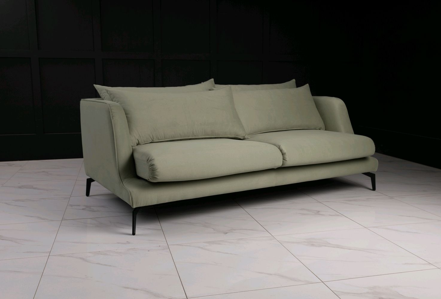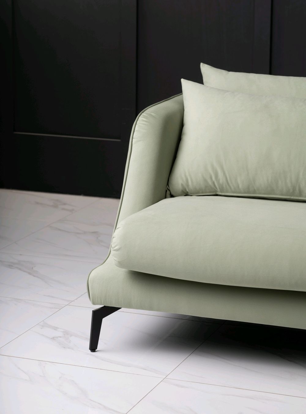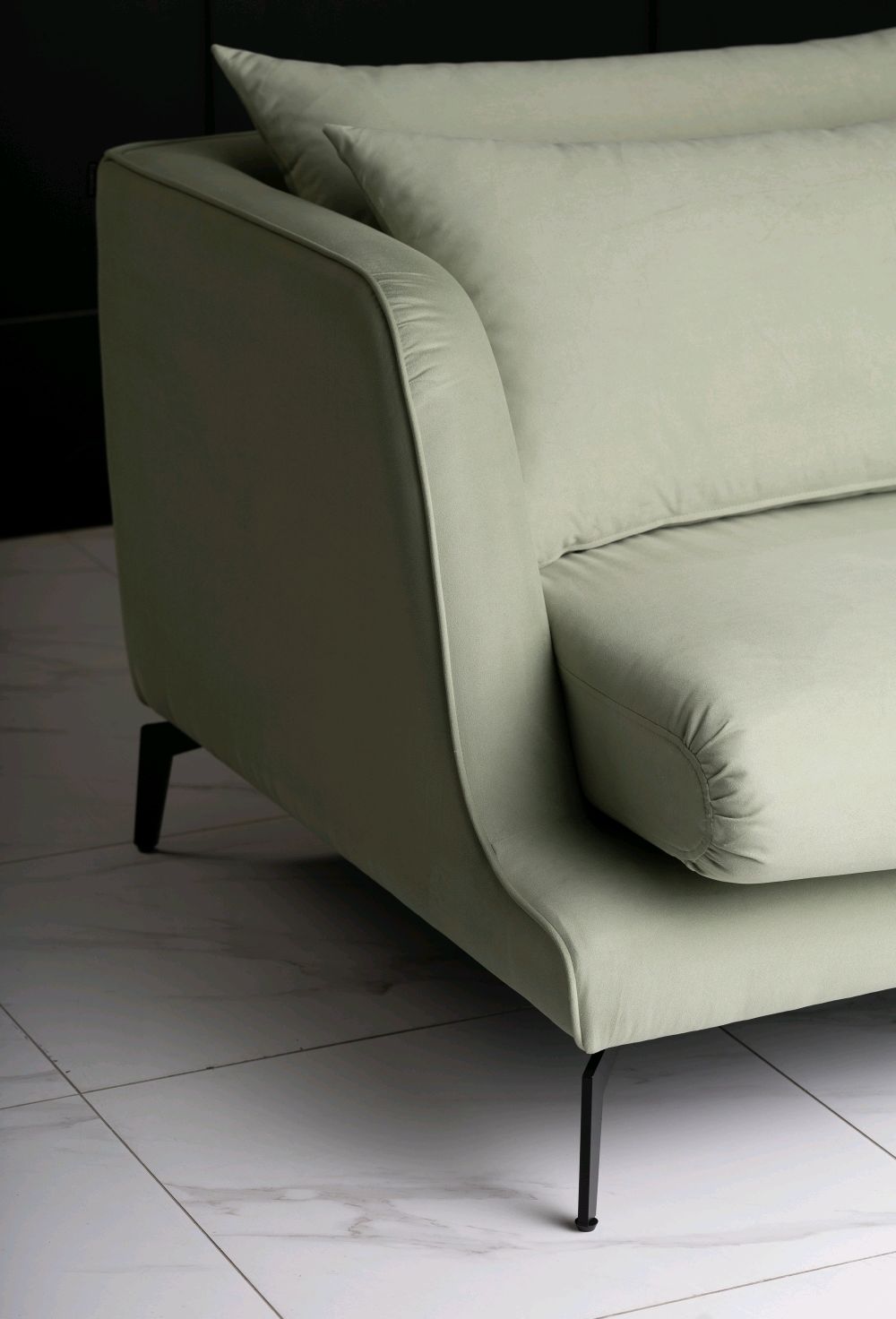 Каркас из берёзовой фанеры, опоры металл, наполнитель ППУ и искуственный антиаллергенный лебяжий пух, подушки со съёмными чехлами на молнии.