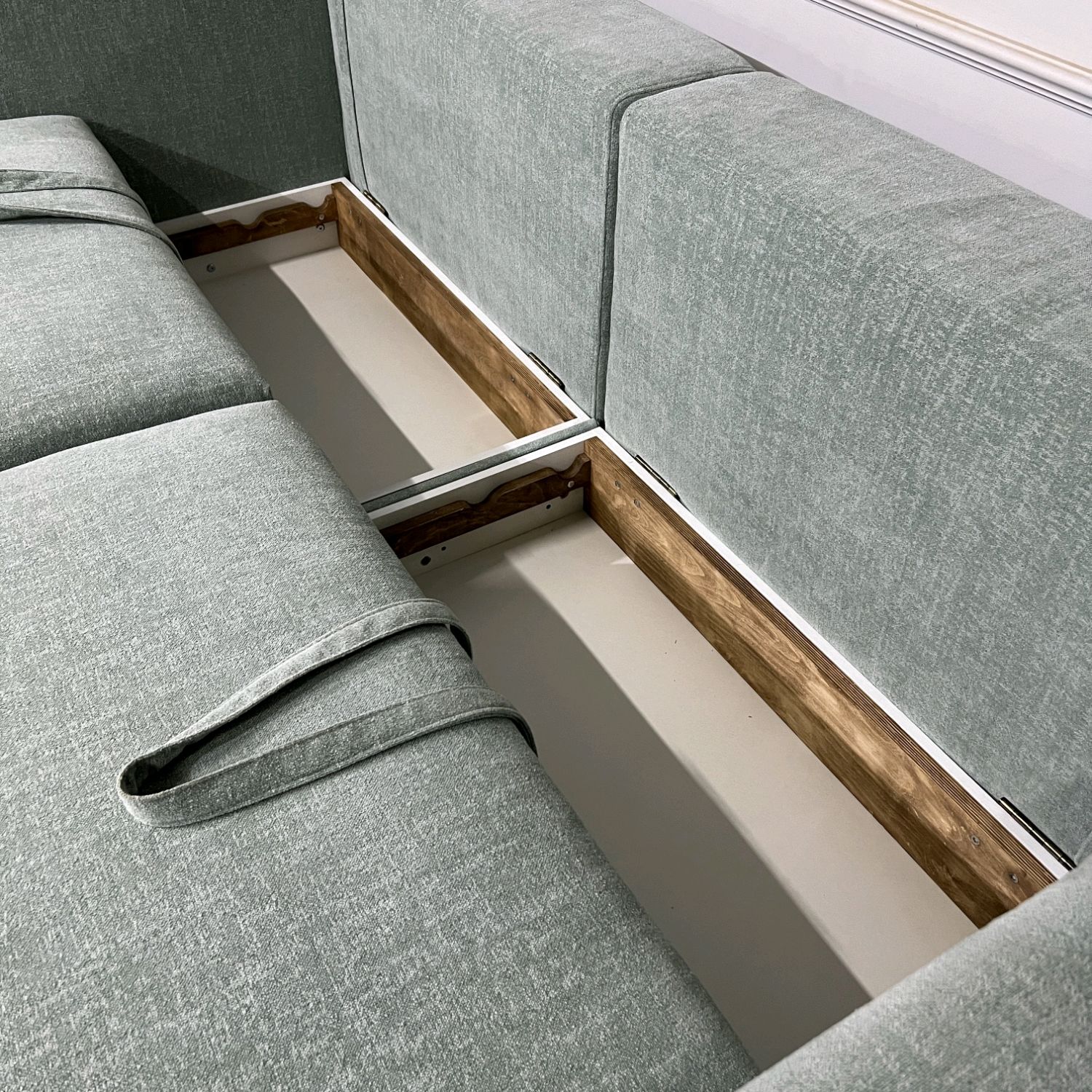 Диван Grande прекрасно подойдёт в Ваш интерьер, имеет раскладной механизм еврокнижка, ящики для хранения вещей. Блоки могут раскладываться вместе или отдельно, на Ваше усмотрение.