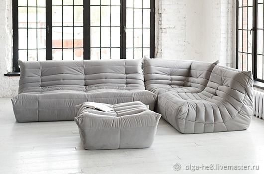 Диван модульный, модули соединяются друг с другом липучками. Таким образом вы можете подобрать размер дивана под вашу комнату.