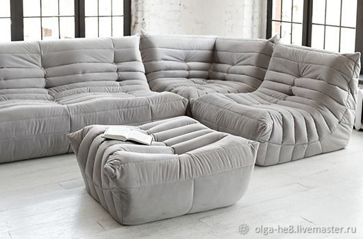 Диван модульный, модули соединяются друг с другом липучками. Таким образом вы можете подобрать размер дивана под вашу комнату.