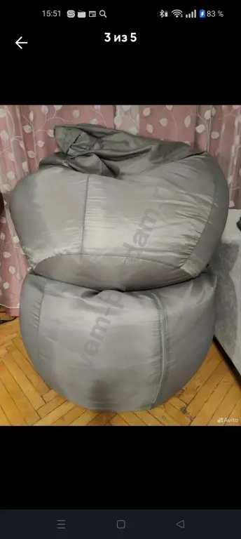 Цена указана за два кресла. Продаются мягкие кресла-мешки серого цвета. В хорошем состоянии, чехол легко снять для стирки и глажки. Кресла оснащены съёмными чехлами из ткани другого материала, что делает их удобными для стирки и ухода. Высота составляет 140 см, ширина — 100 см. Идеально подойдут как для гостиной или дачи, так и для уютного уголка на природе.