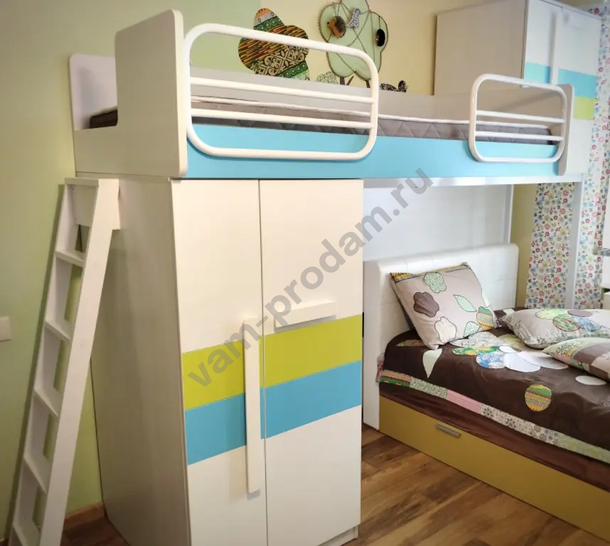 - В кровать входят два шкафа - большой для одежды под кроватью и шкаф-антресоль справа вверху.