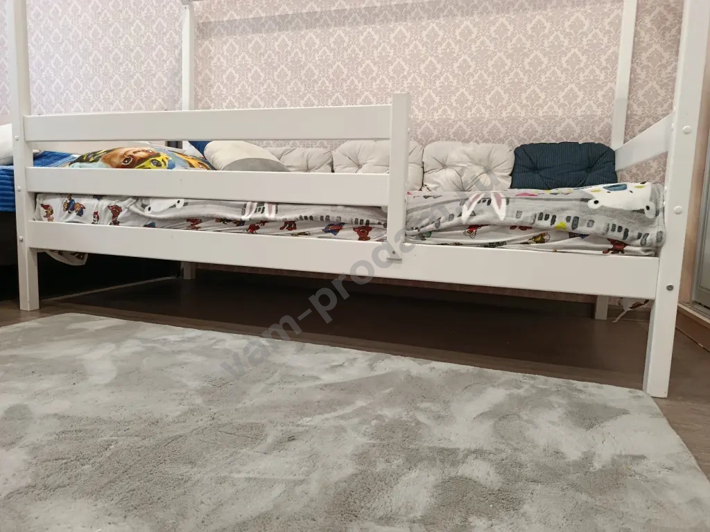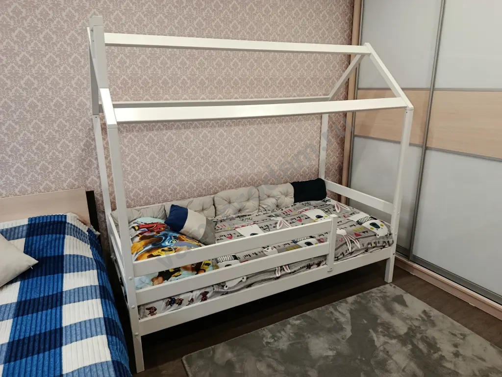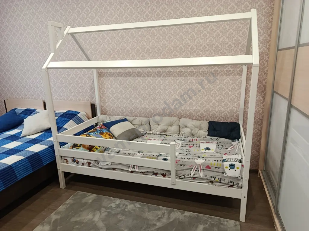 Очень удобная и вместительная кроватка для ребенка. С крышей, можно повесить балдахин или гирлянду, будет очень красиво и уютно. Ребенку понравится и спать и играть.