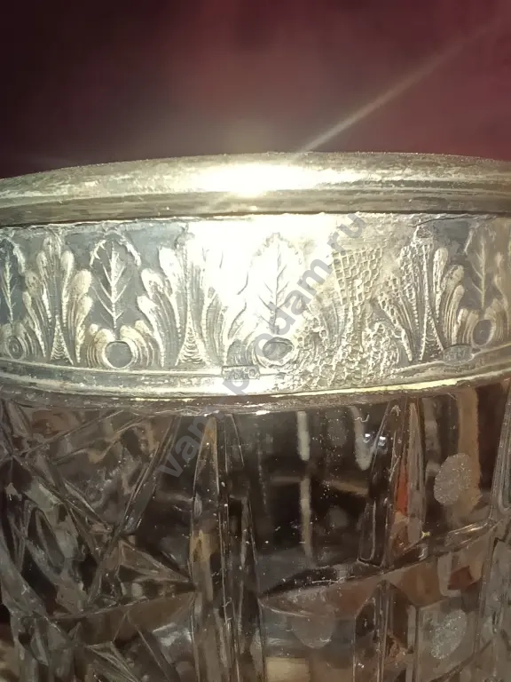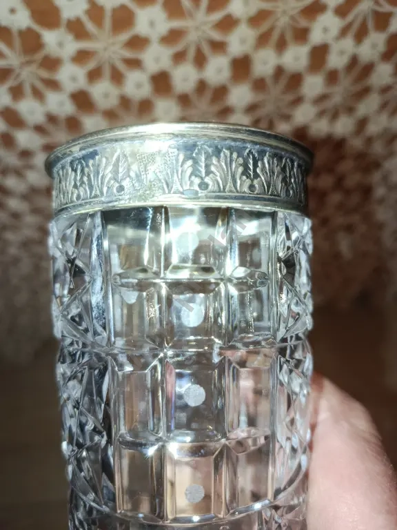 Ваза в хорошем состоянии , высота 28 см ,ободок- серебро 875 пробы ,
