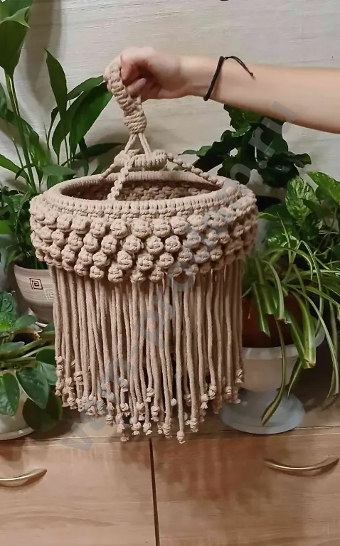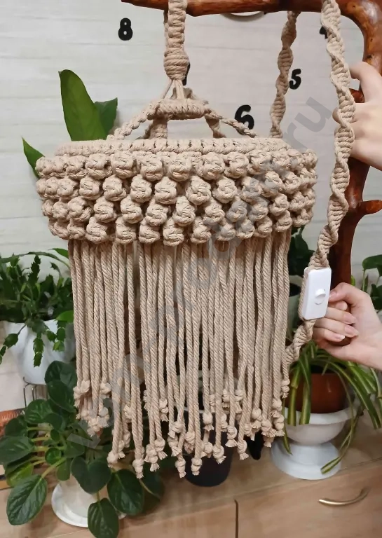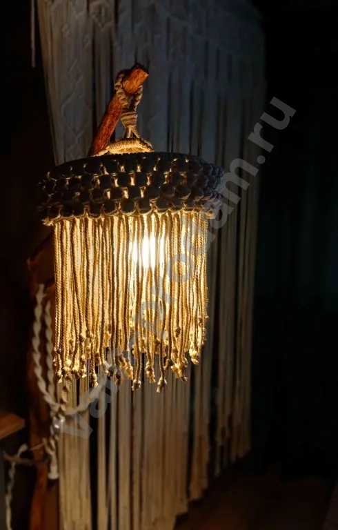 Светильник (люстра, абажур) выполнен из хлопкового шнура в технике макраме в цвете "капучино".