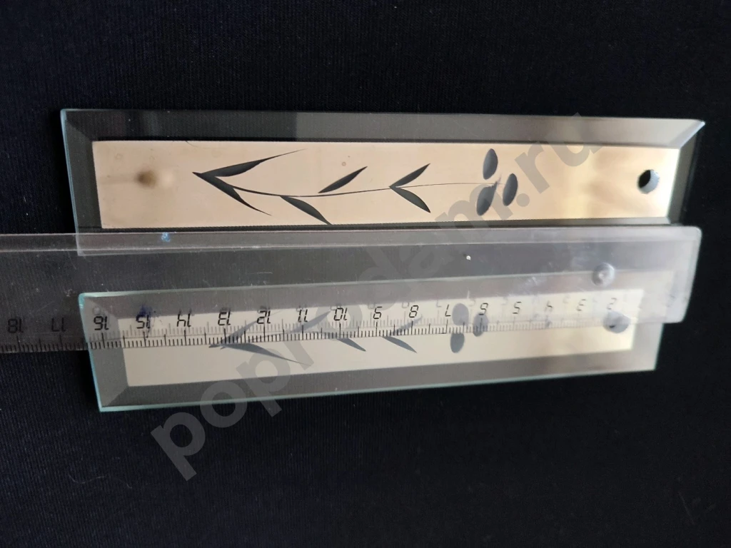 Материал стекло с фаской и зеркалом посередине с цветком.