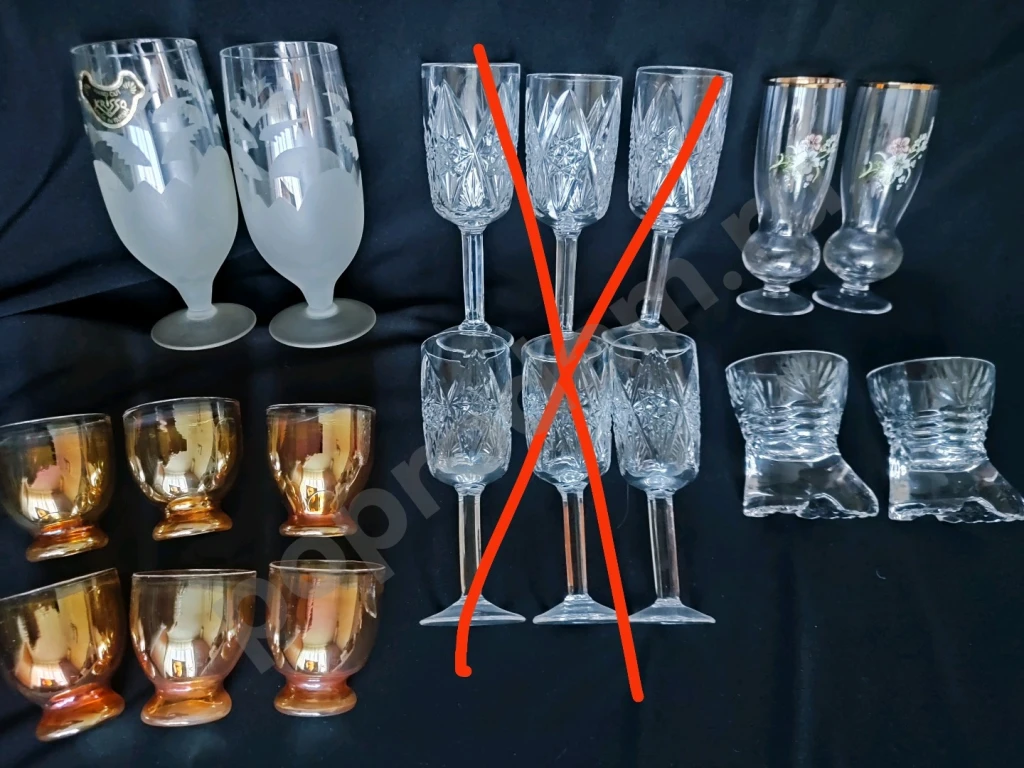 Бокалы, фужеры, стопки, рюмки цветное стекло и хрусталь времён СССР.