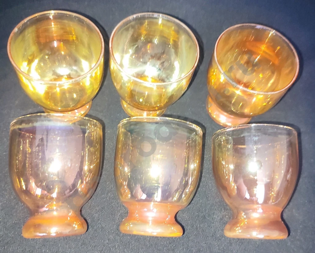 Стопки, рюмки жёлтое стекло 6 шт.
