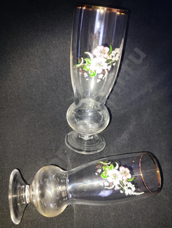 Рюмки ликерные стекло с талией и нежным цветочным рисунком, с позолотой по ободку (для шикарных дам) 2 шт.