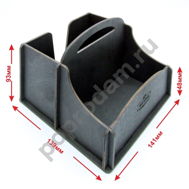Размеры салфетницы 141х139х93мм и рассчитана она на стандартный размер салфеток.