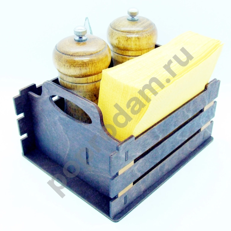 Функциональная и элегантная компактная настольная подставка-диспенсер для салфеток с отсеком для специй.