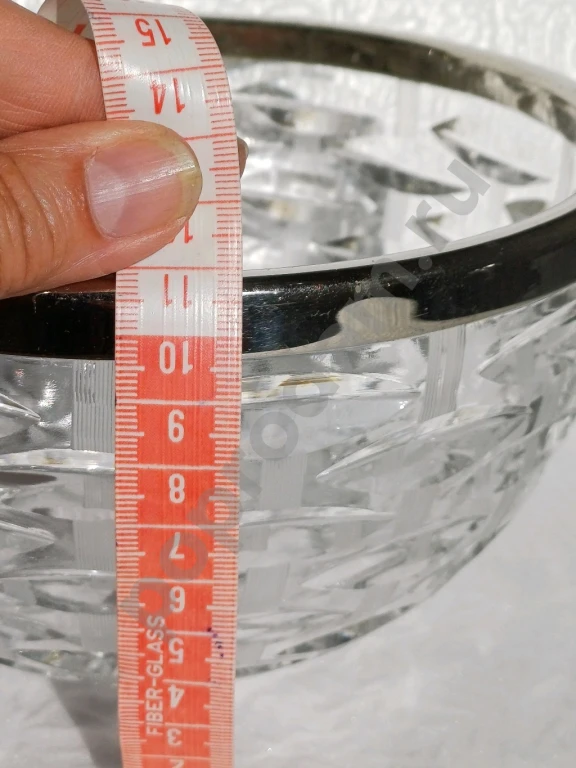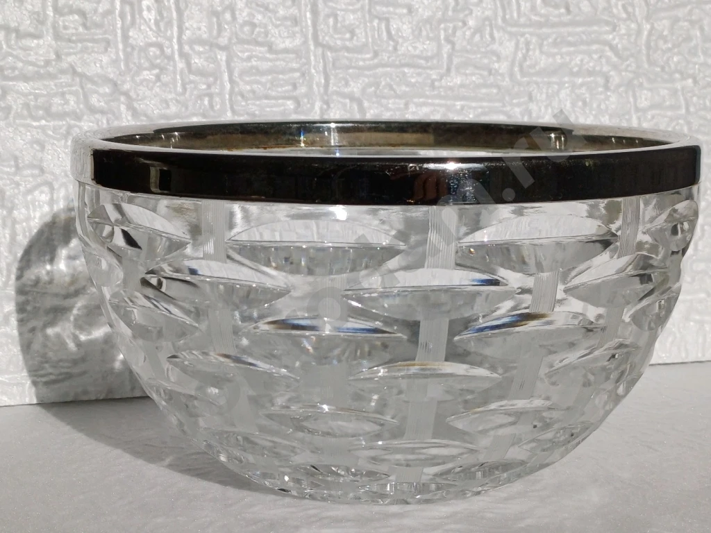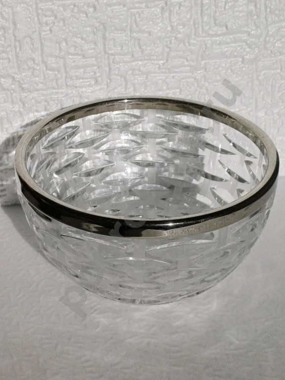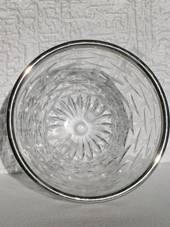 Ваза хрусталь с металлическим ободком из нержавейки. СССР.