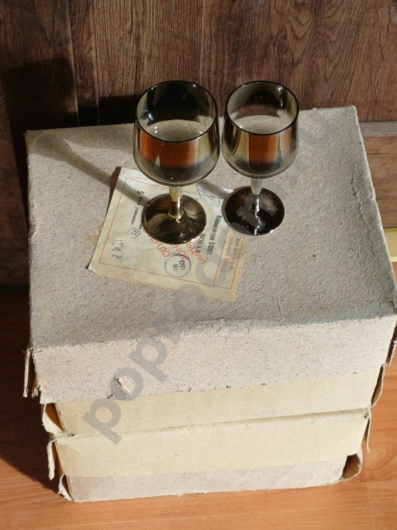 Бокалы, фужеры дымчатые с золотистым переливом. Гусь-Хрустальный завод. 1994 год.