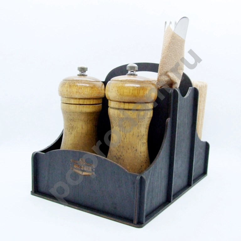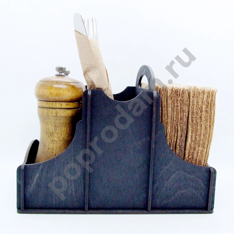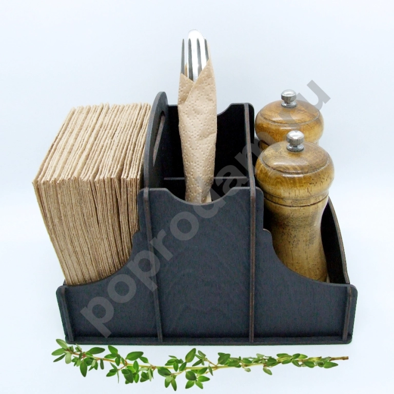 Функциональная и элегантная настольная подставка 3 в 1: салфетница, отделение для столовых приборов и отсек для специй.