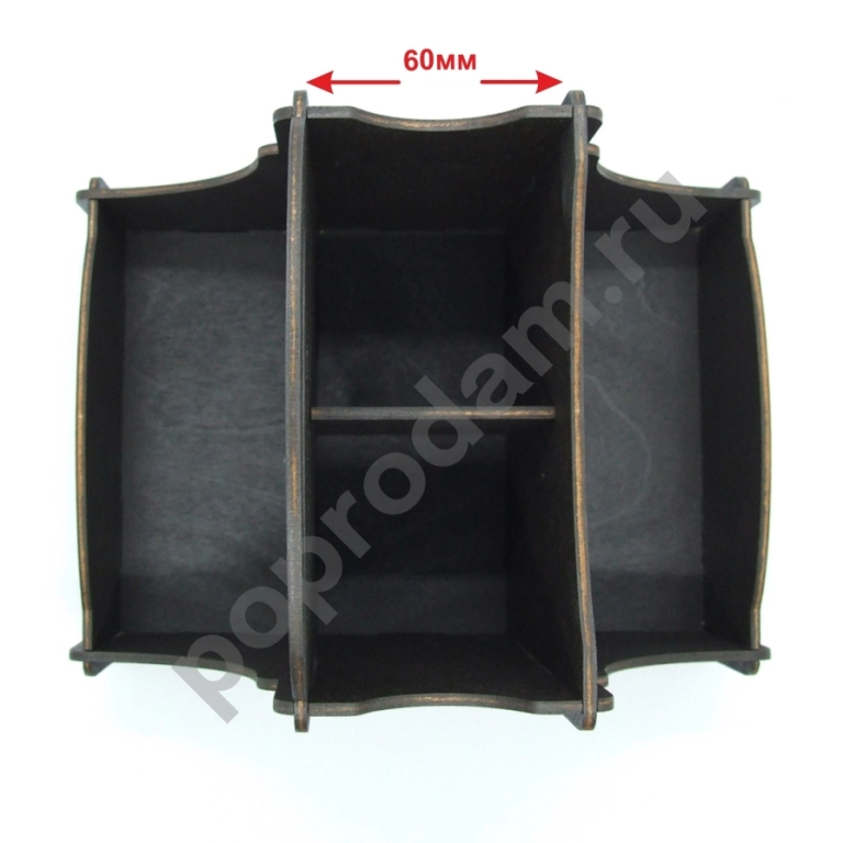 Отделение для столовых приборов имеет внутренний разделитель, организуя два пространства размером 60х60мм и высотой 120мм.