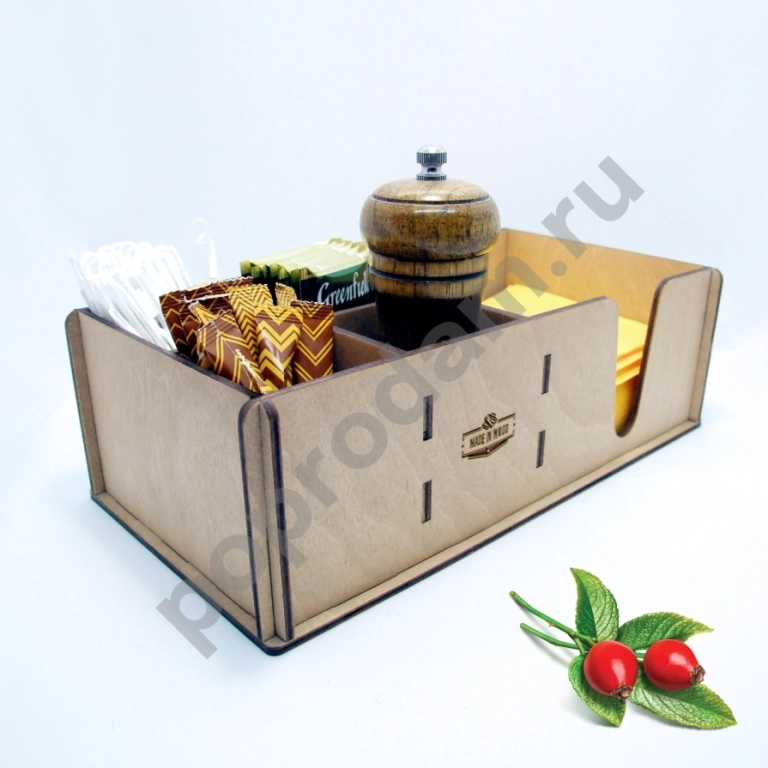 Конструкция органайзера позволяет придать законченный вид кофейной зоне, сервировке стола, разместив в нем все повседневные нужности.