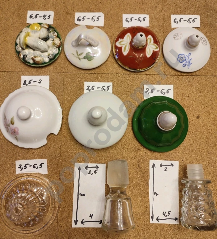 Крышечки фарфоровые и стеклянные от сахарниц, чайников, графинов разные времен СССР.