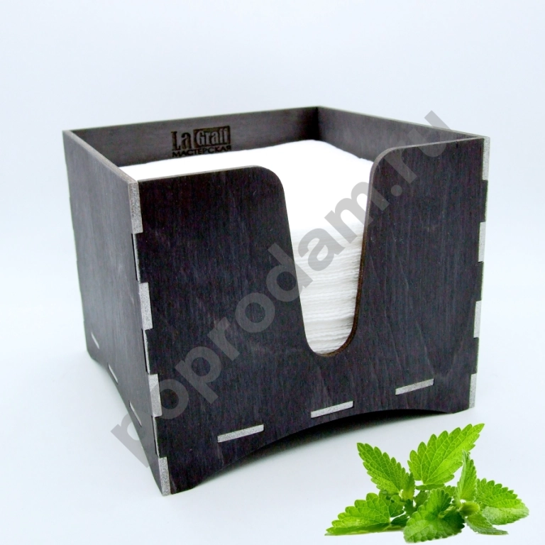 Салфетница выполнена из натурального дерева (высококачественной березовой ламели), обработана и собрана вручную и покрыта декоративным экологически безопасным тонирующим составом цвета "космос", отлично подчеркивающим красоту рисунка древесины.