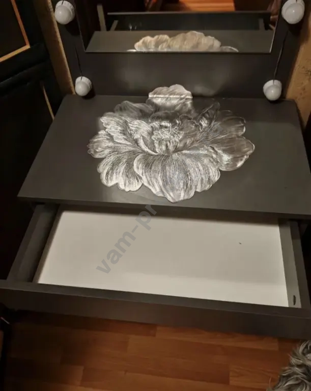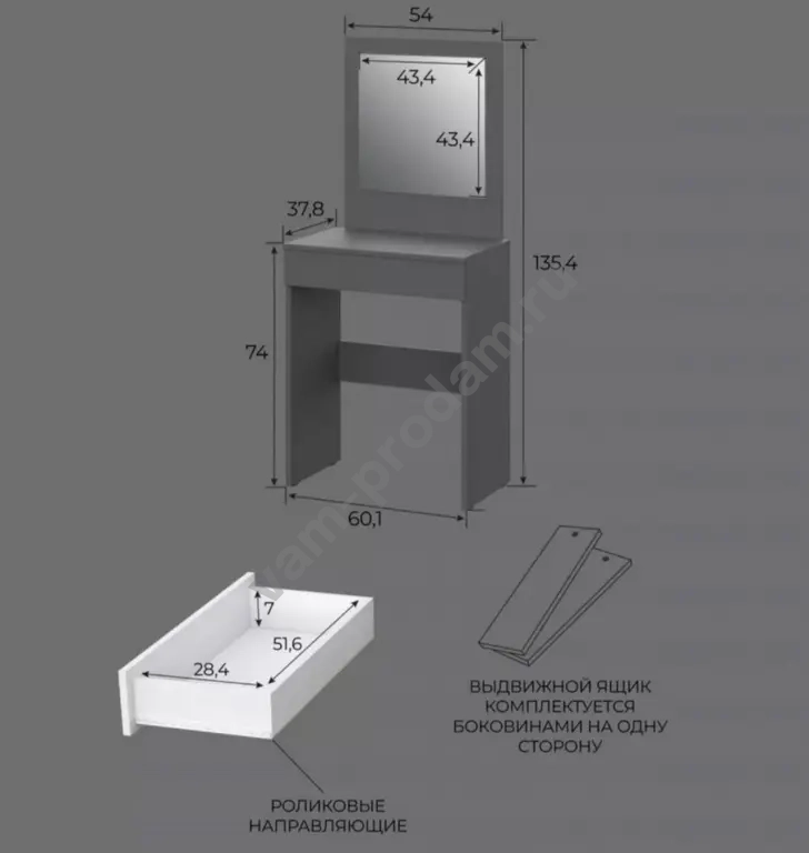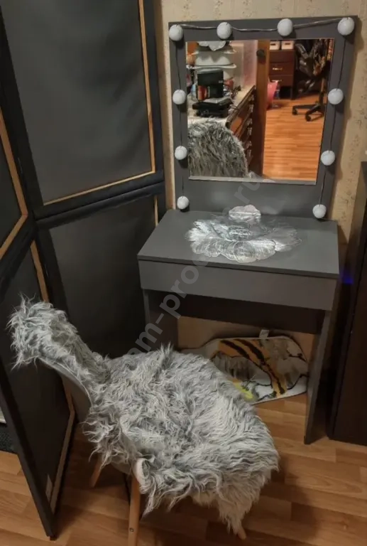 Новый туалетный столик с зеркалом и лед фонариками , стул и меховая подстилка. Материал ЛДСП, характеристики указаны на фото.