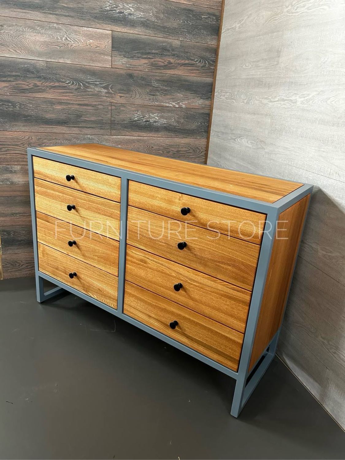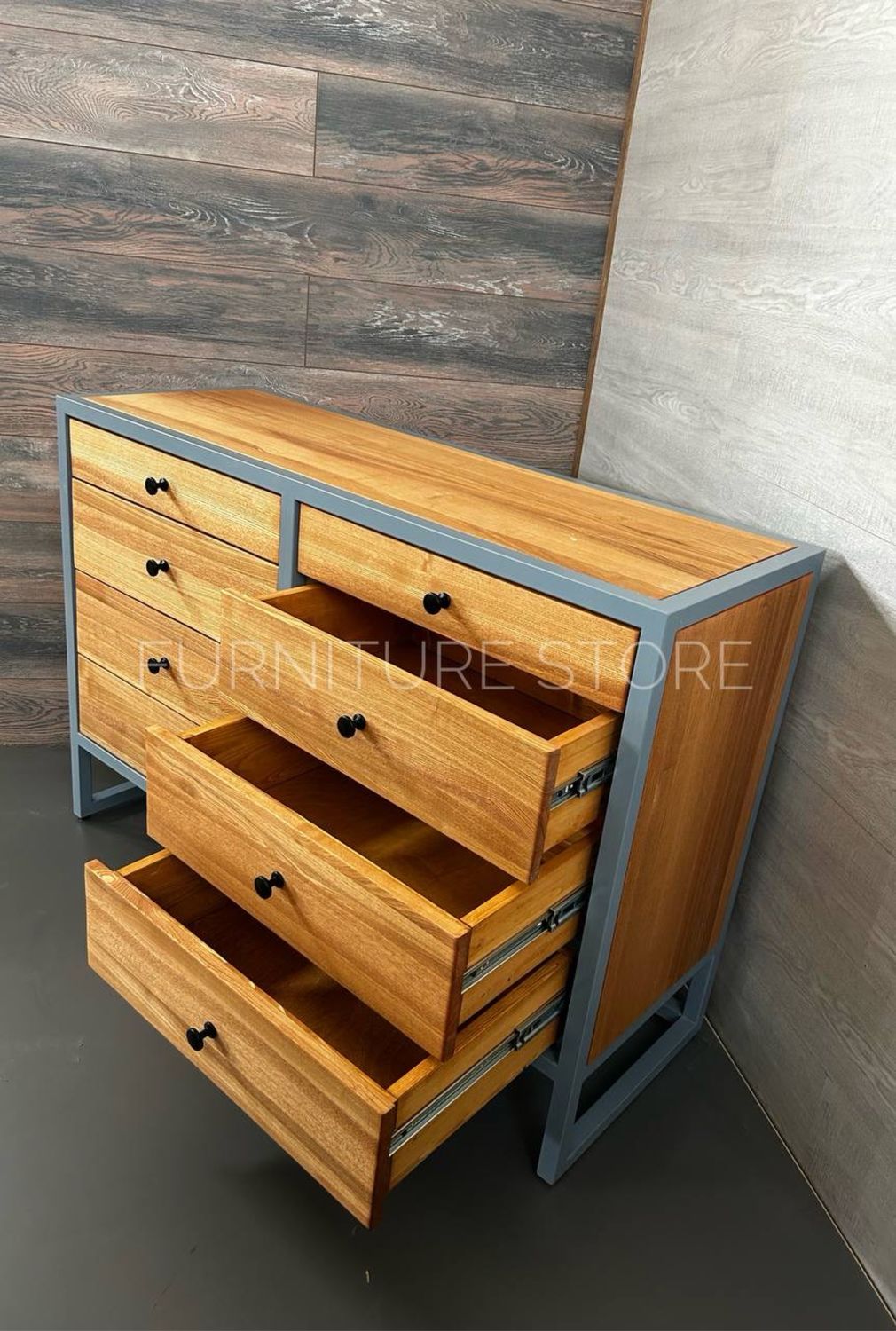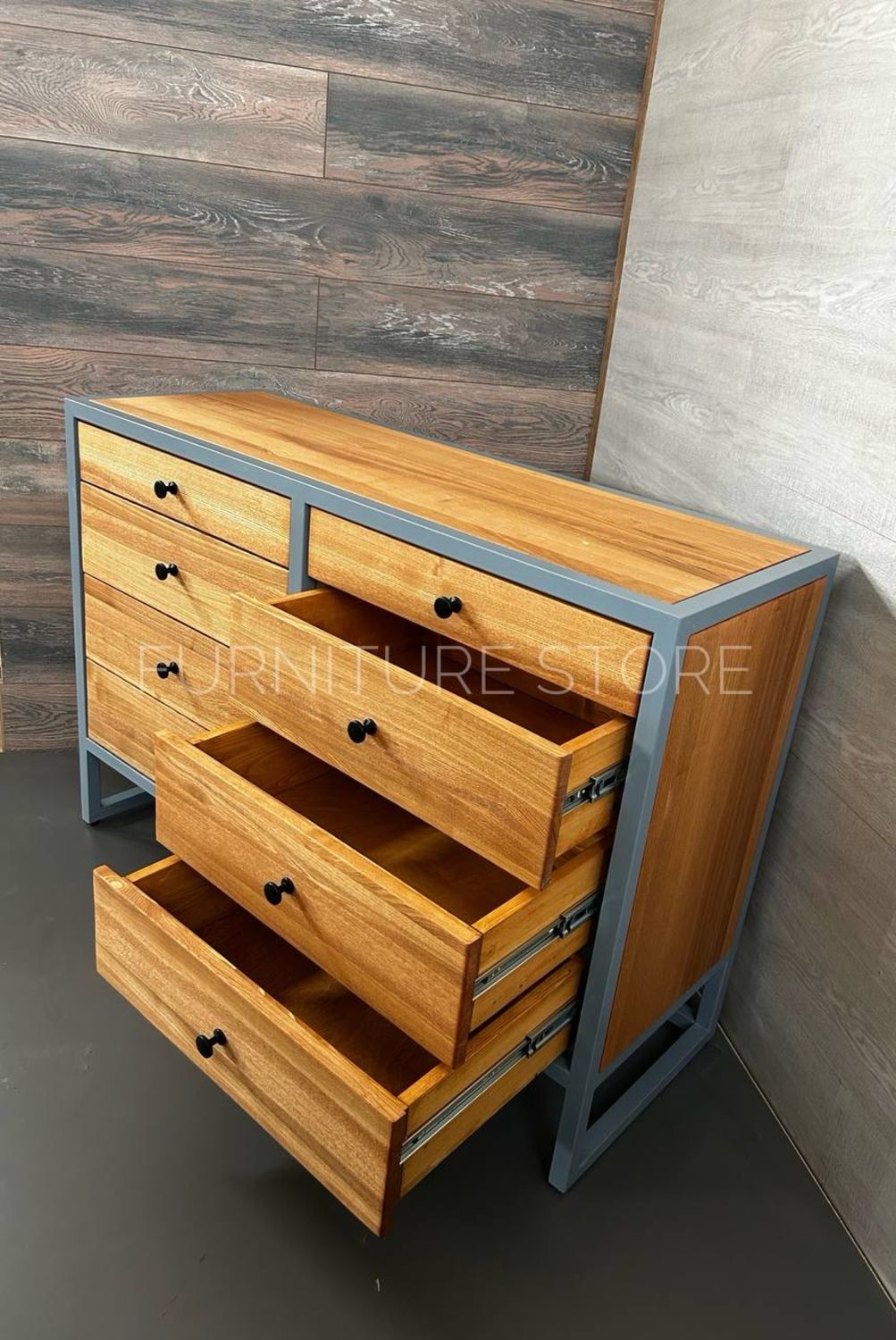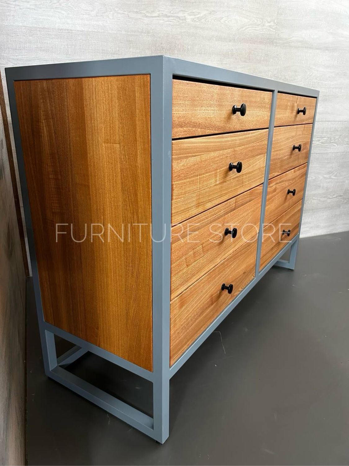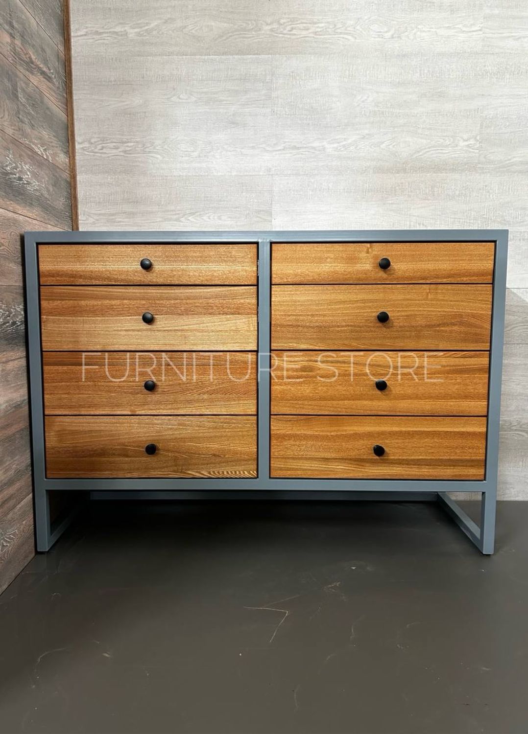Современный комод, сочетающий натуральный ясень с тонирующим маслом и металлический каркас с порошковым покрытием. Чёткие геометрические формы, выразительная текстура дерева и индустриальные элементы — идеальное сочетание для интерьера в стиле лофт, скандинавского минимализма или урбанистического дизайна.