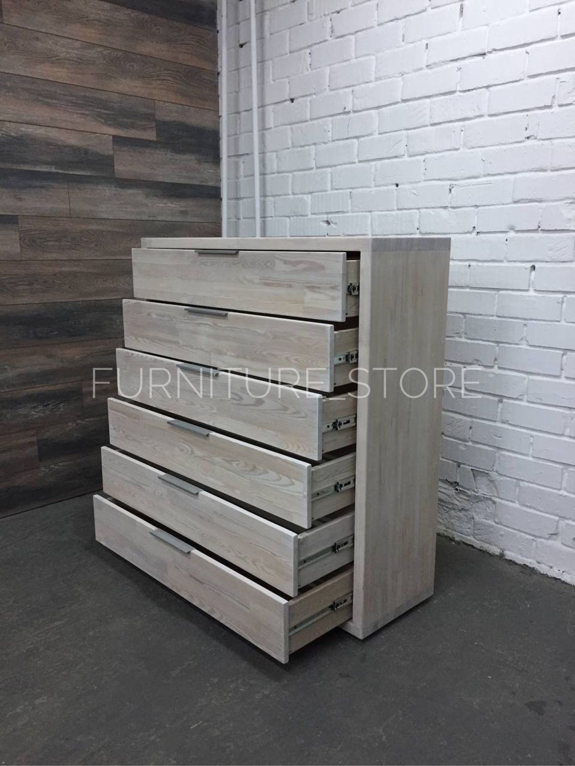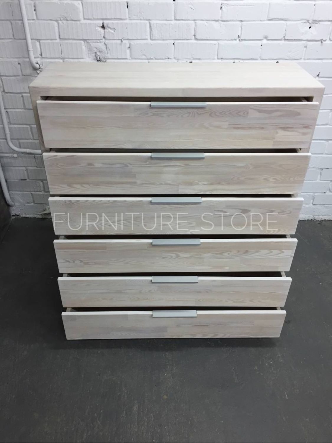 Комод в спальню с шестью выдвижными ящиками на направляющих с доводчиками изготовлен из массива ясеня. Ясень покрыт тонирующим маслом по дереву "варатан" и матовым мебельным лаком.