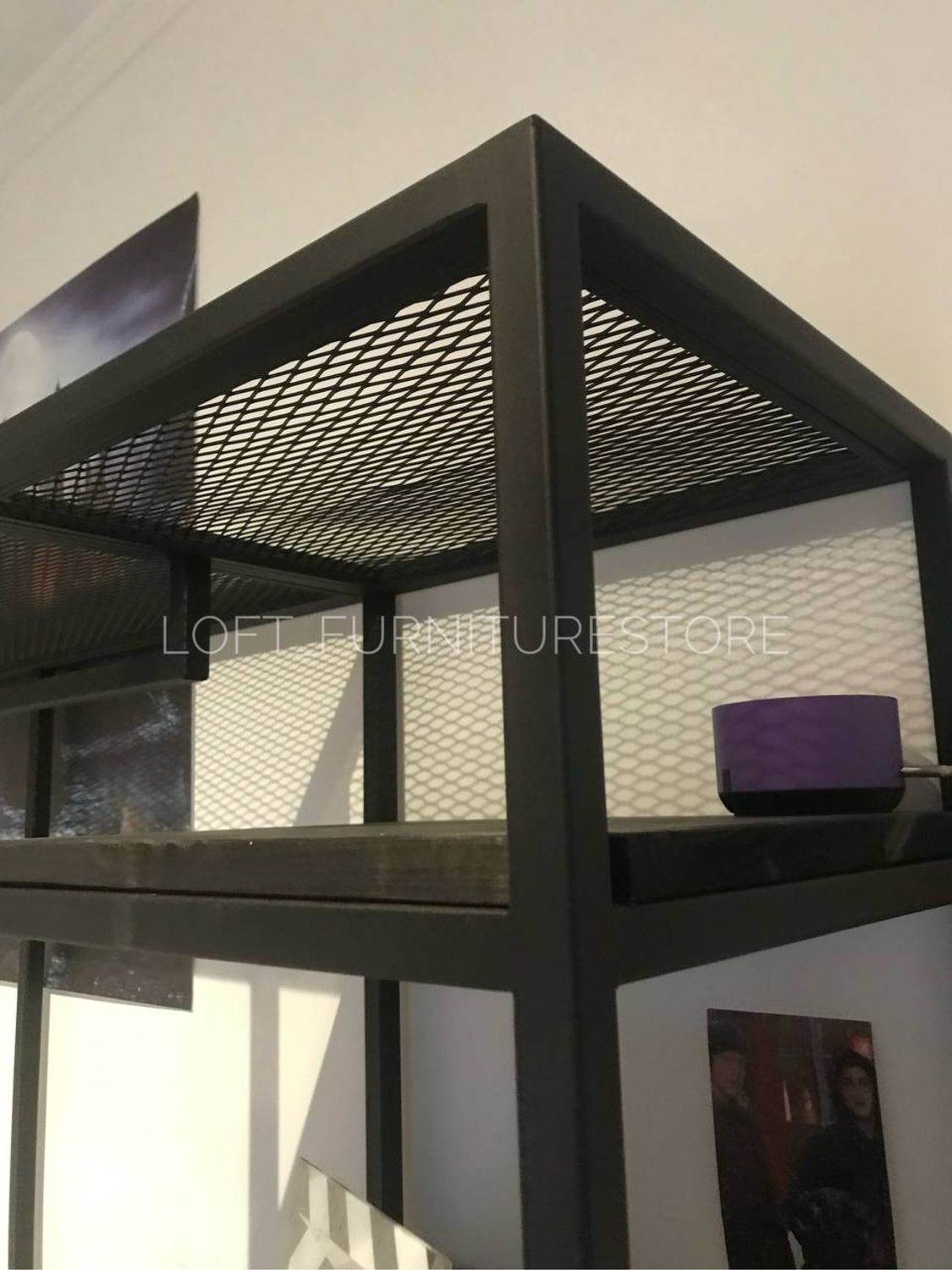 Металлическая сетка на верхней полке придает стеллажу современный вид и обеспечивает отличную циркуляцию воздуха.