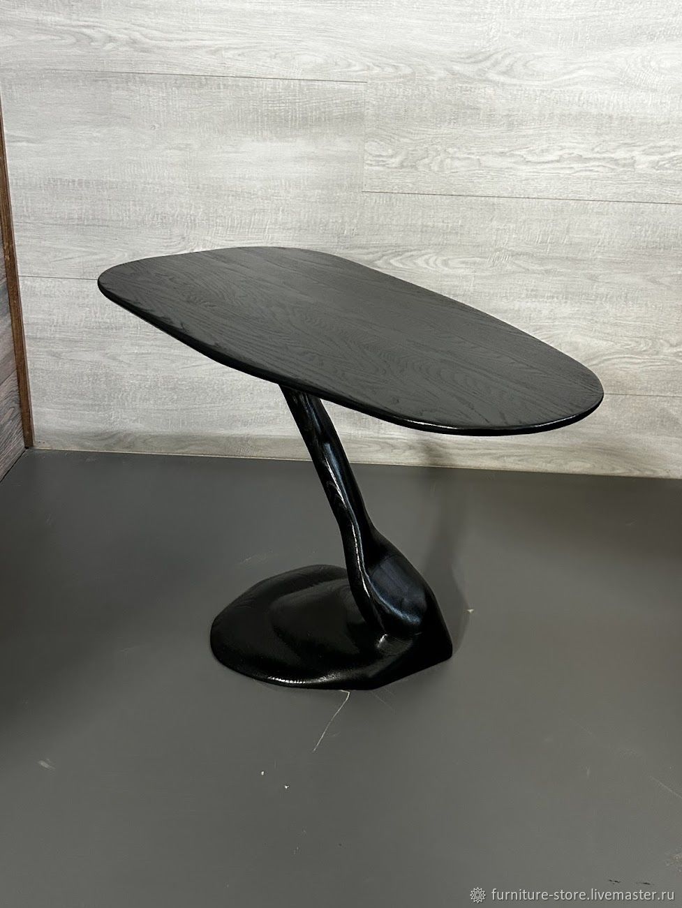 Этот журнальный стол ручной работы, изготовленный из массива ясеня и покрытый тонирующим маслом и мебельным лаком, — не просто функциональный элемент интерьера, а настоящее художественное произведение. Его форма, плавная и невесомая, словно крыло птицы в полёте, несёт в себе аллегорию свободы и движения. Круглая столешница будто парит над изогнутой ножкой, напоминающей струну или изгиб реки, которая соединяет берега — землю и небо, прочность и изящество.