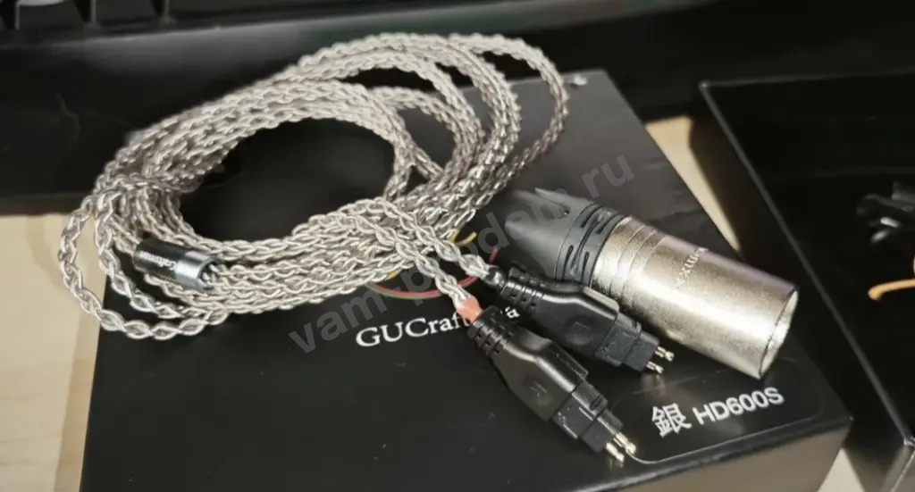 Топовый фирменный ультимативный балансный XLR кабель GU Craftsman из монокристаллического серебра очистки 6N для наушников Sennheiser 5xx и 6xx серий. Коннекторы вилка.