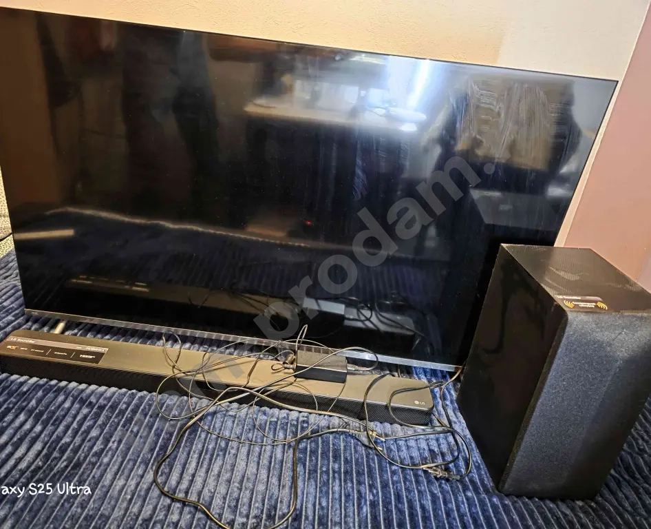 Телевизор Haier, модель 50 SmartTv S3, 2023 год. Саундбар LG SN4 с беспроводным свбвуфером общей мощностью 300ватт, 2023 года.