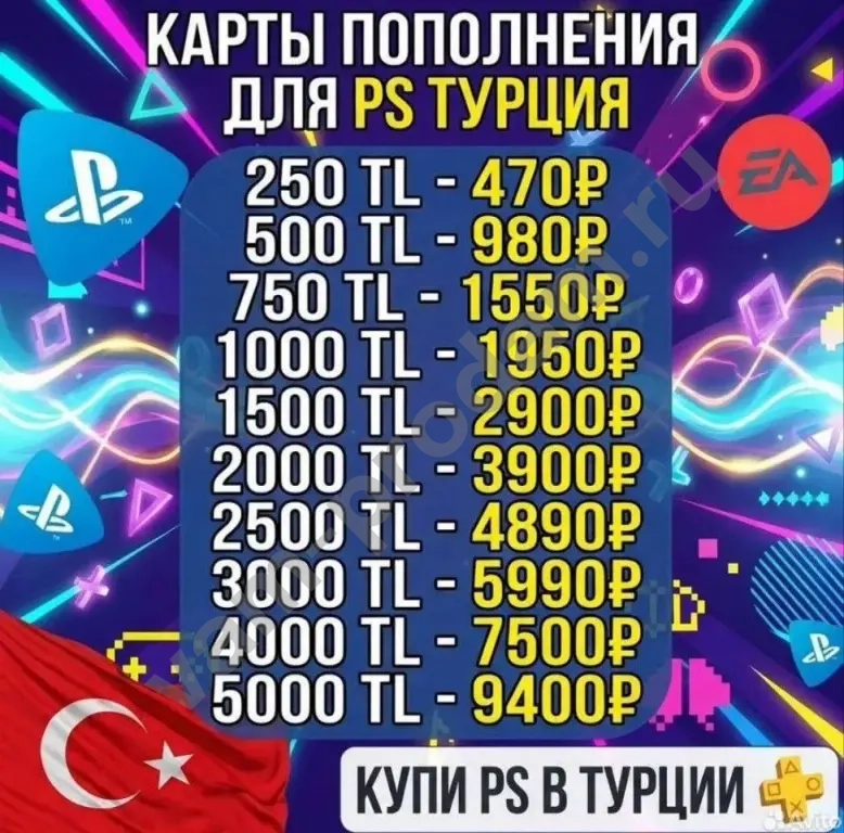 Пополнение PSN кошелька турецкого региона картами TL 🇹🇷