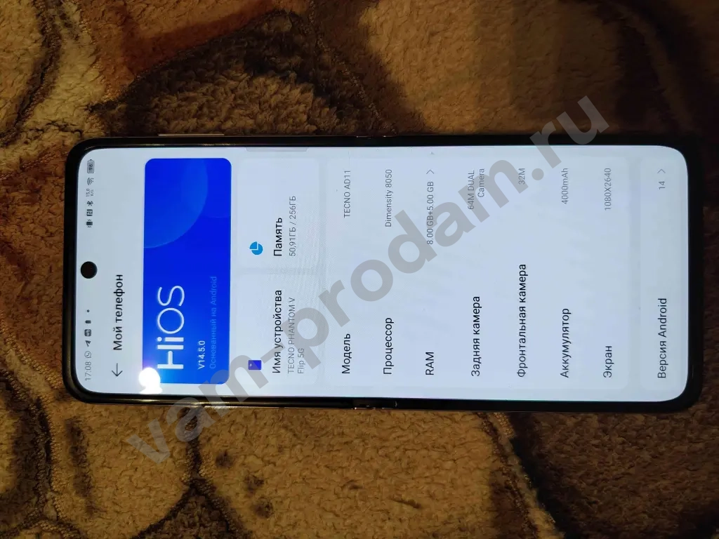 Смартфон Tecno Phantom V Flip 5G, 8/256 ГБ.