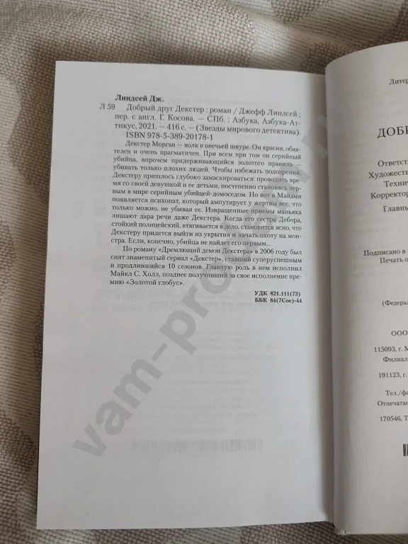 «Добрый друг Декстер» — второй роман автора из цикла о полицейском—маньяке, действующем по особому кодексу чести. По мотивам серии книг был снят популярный одноименный сериал.