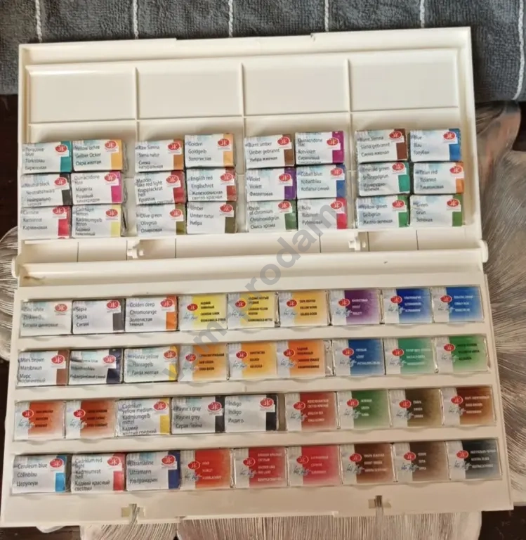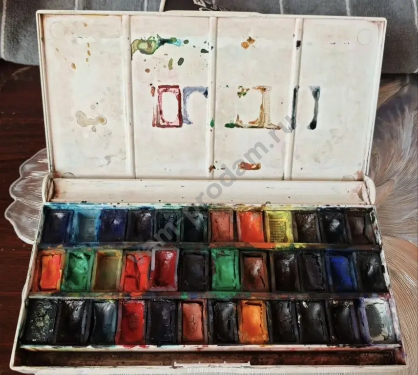 Акварельные, профессиональные художественные краски "Невская палитра" , 60 цветов, новые + старые краски, тоже от "Невской палитры", 30 цветов, на фото видно, в каком состоянии, и в подарок палитра и руководство по рисунку и живописи, подготовленное коллективом преподавателей факультета рисунка и живописи центрального дома народного творчества им. Н. К. Крупской.