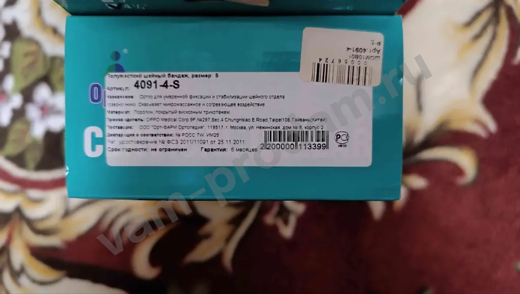 Бандаж на шейный отдел позвоночника OPPO 4091-4. Размер S. Купила, проверила, подписала, как использовать, но не пользуюсь.
