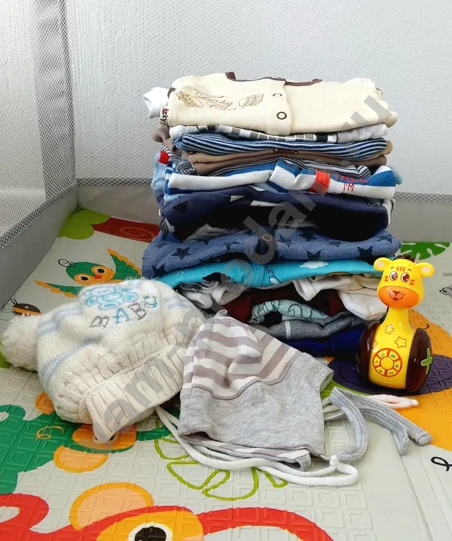 Вещи на мальчика в основном размер 62 в отличном состоянии. Хорошие игрушки в подарок.