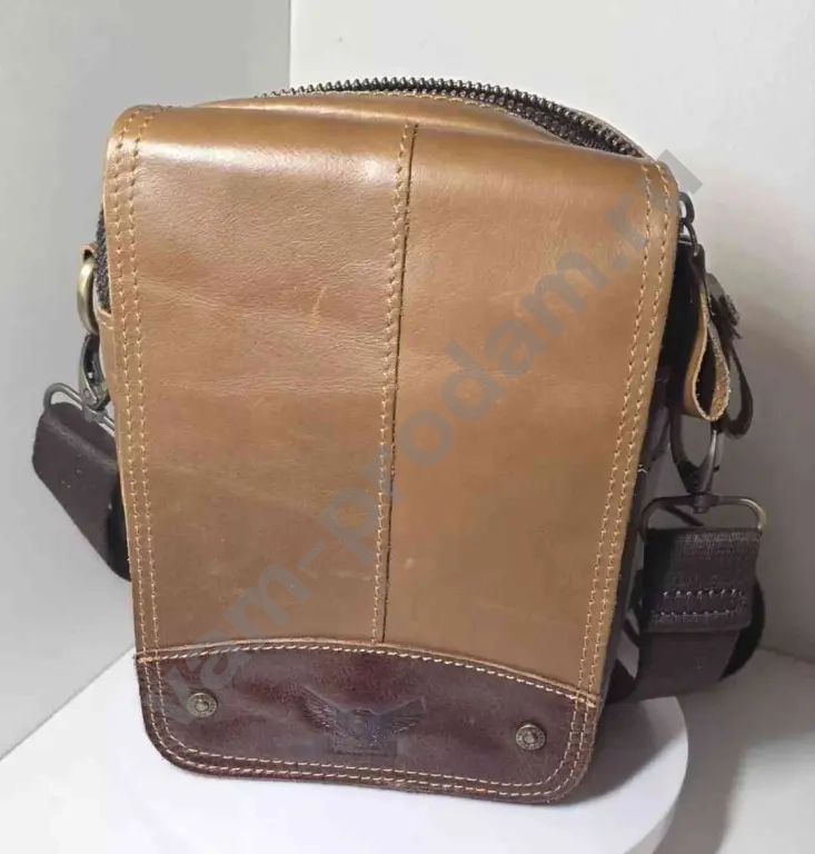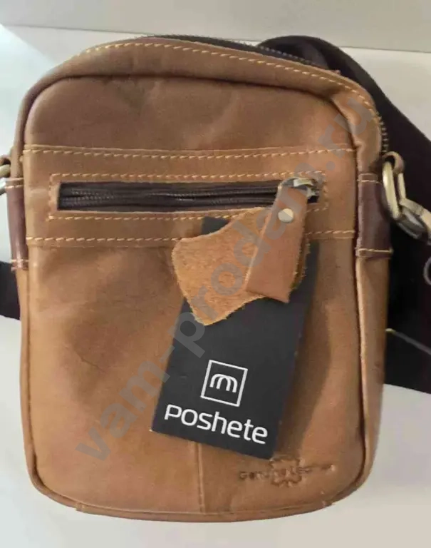 Новая мужская сумка через плечо, небольшого размера, на каждый день от бренда Poshete. с отличным качеством отделки, эффектом потёртости и золотистой металлической фурнитурой, выполнена из мягкой натуральной кожи. Хорошо подходит для вещей, которые всегда нужны под рукой: телефон, кошелёк и автодокументы. Сумка коричневого цвета, с мешковидным ремнем, который регулируется по длине. Снаружи под клапаном два кармана на молнии и без застежки , и независимое отделение на молнии. Всего в сумке три отделения и три кармана на молнии. Размеры сумки: 15х6х20 см. Сумка новая.
