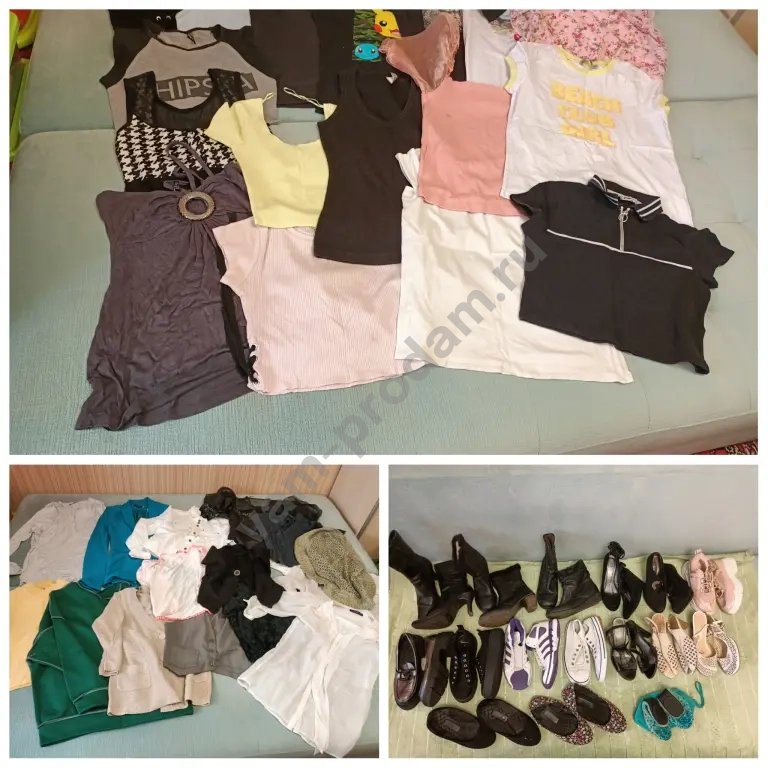 1. Шесть огромных пакетов женской одежды, обуви бу.