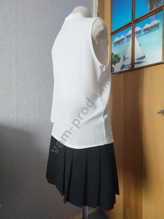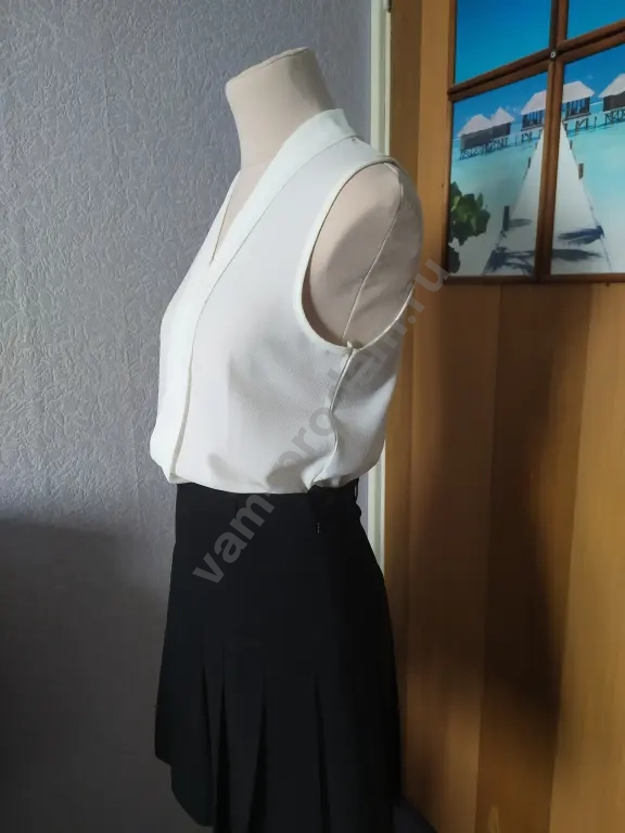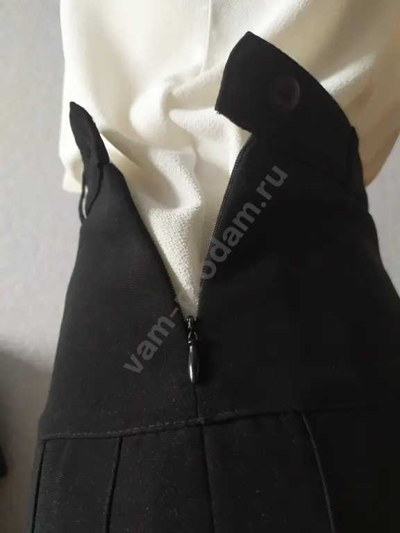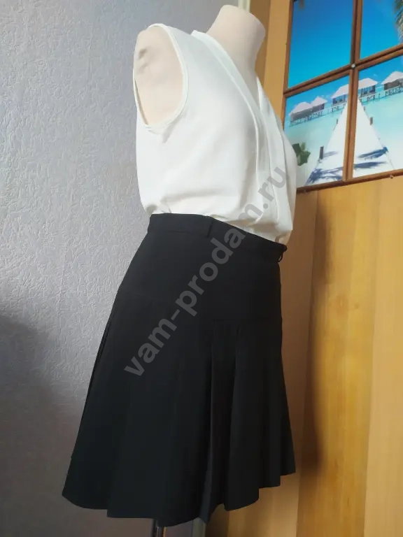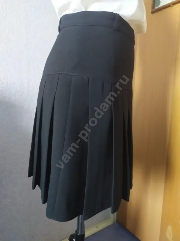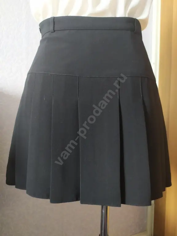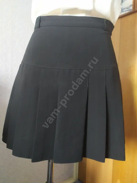 Мини юбка в складку на кокетке, с поясом. Застёжка сбоку на молнию и пуговицу. Юбка на подкладке.
